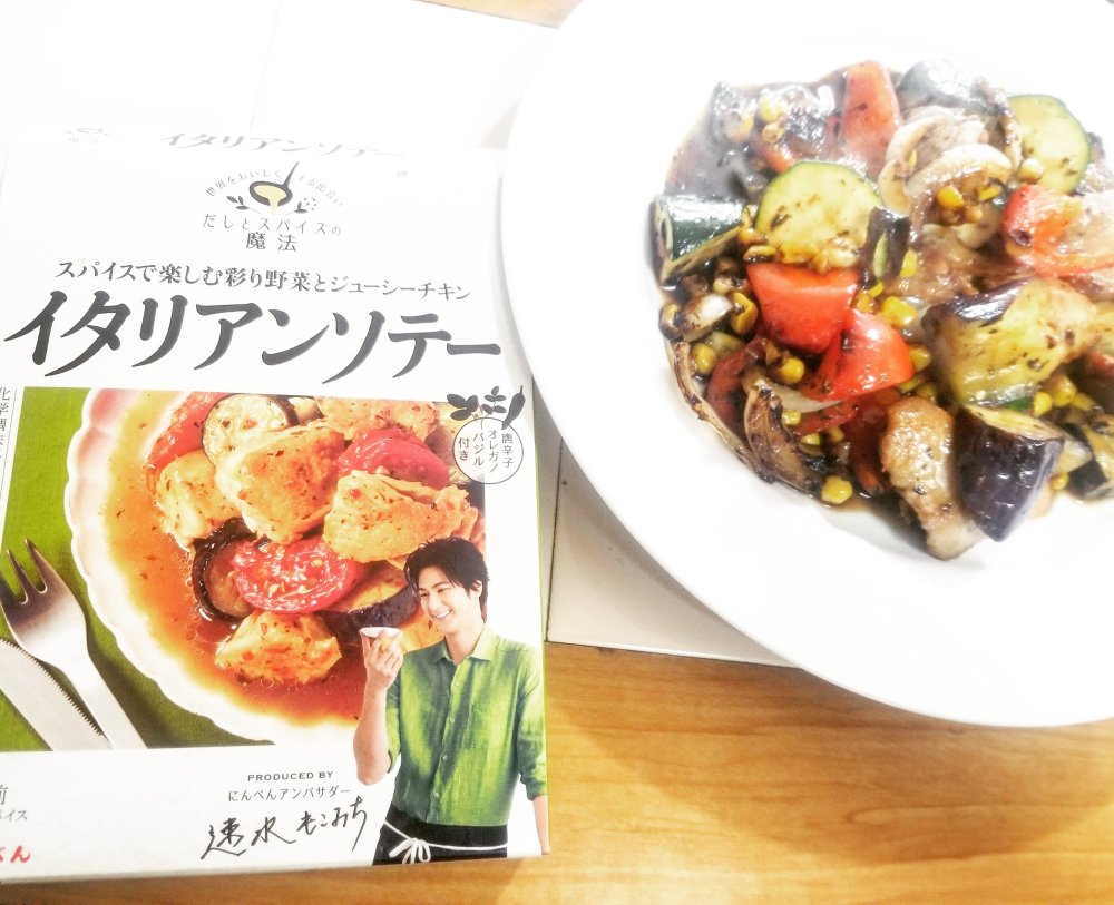 今回はにんべんさんの「だしとスパイスの魔法」シリーズから、イタリアンソテーを使ってみました。