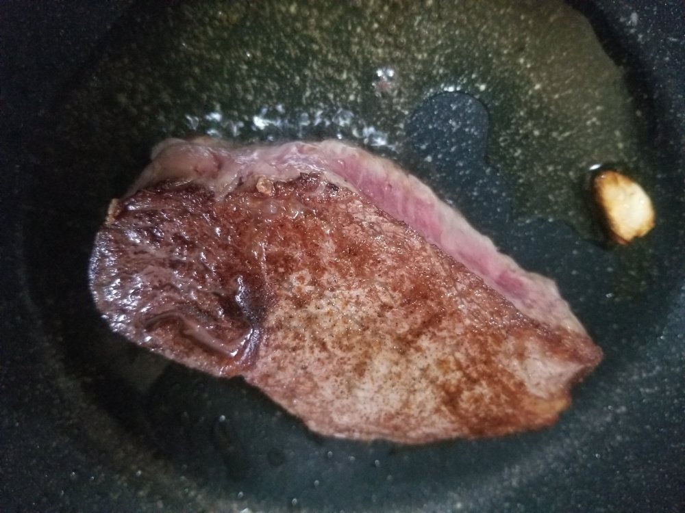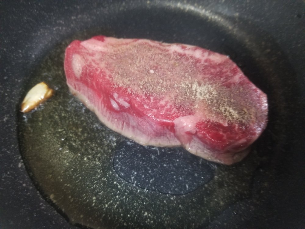 お肉を焼くときは、煙が立つくらいにフライパンを熱して、火を弱めたらお肉を載せます。