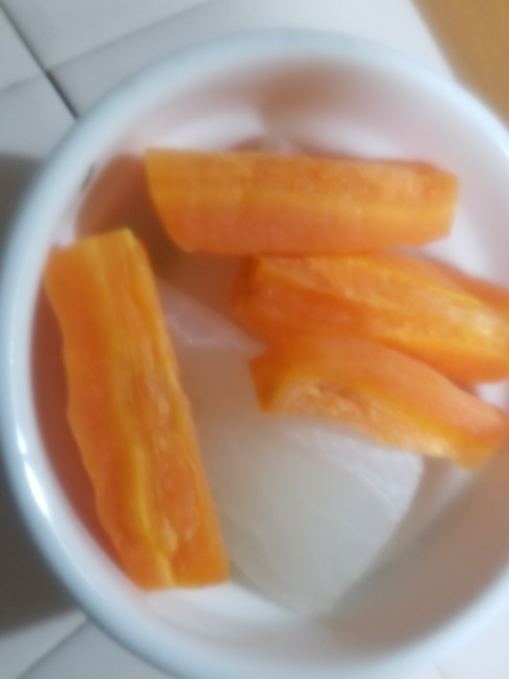まず皮をむいて食べやすい大きさに切った大根と人参を五分ほどレンジで加熱します。