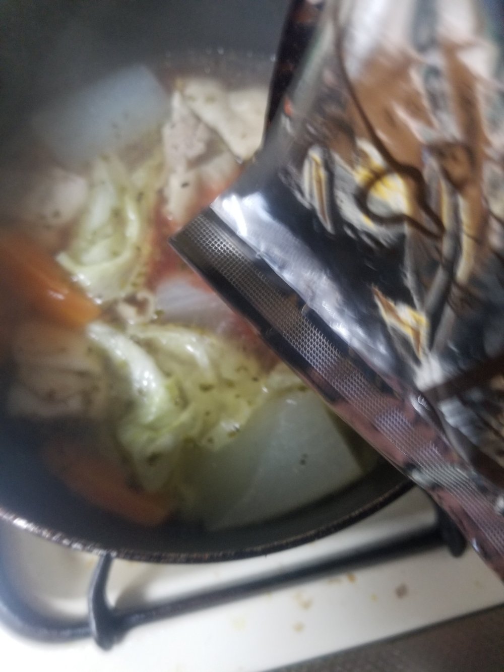 鶏の色が変わったら水500㏄と「だしとスパイスの魔法」のスパイスを入れて15分ほど煮込みます。
