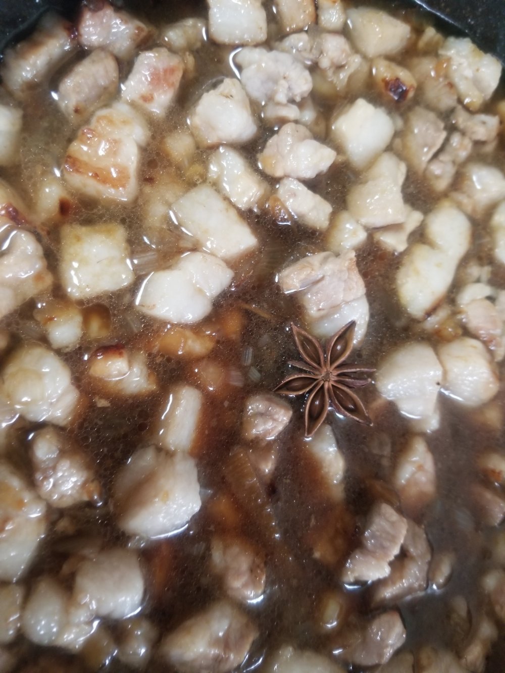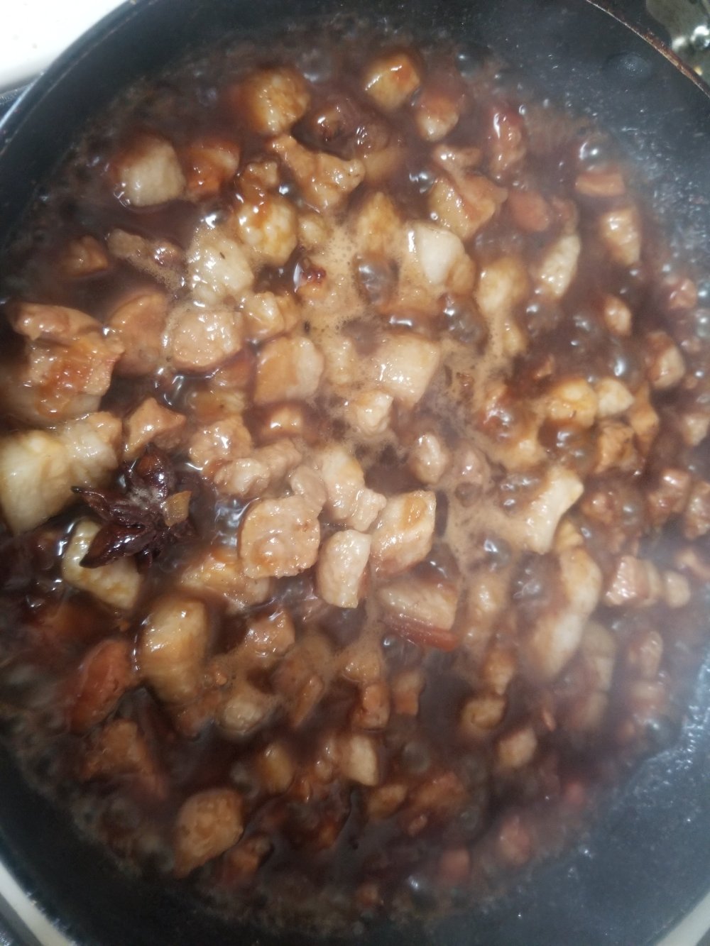 フライパンに醤油、みりん、砂糖、水、八角を入れて煮立たせます。