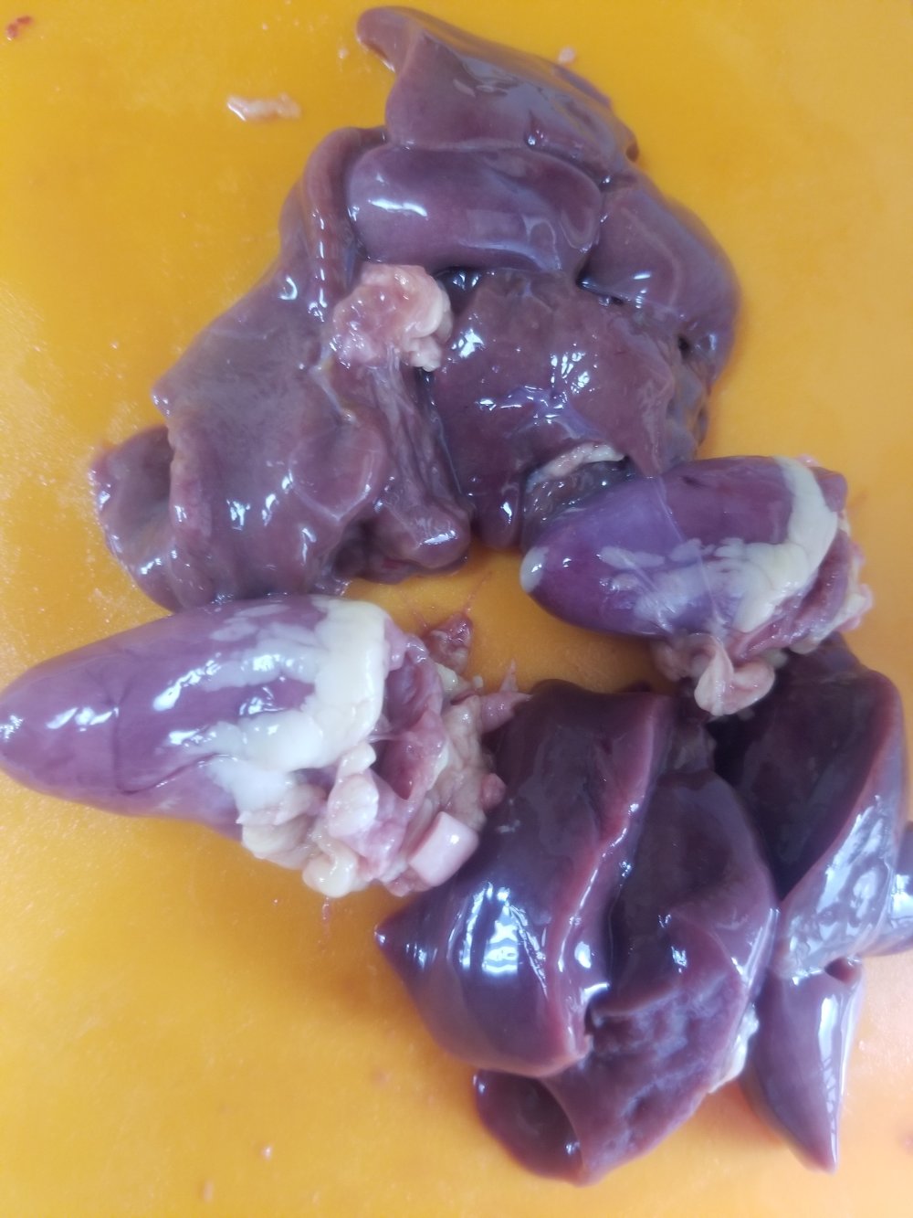 鶏レバーは食べやすいサイズに切り分けておきます。