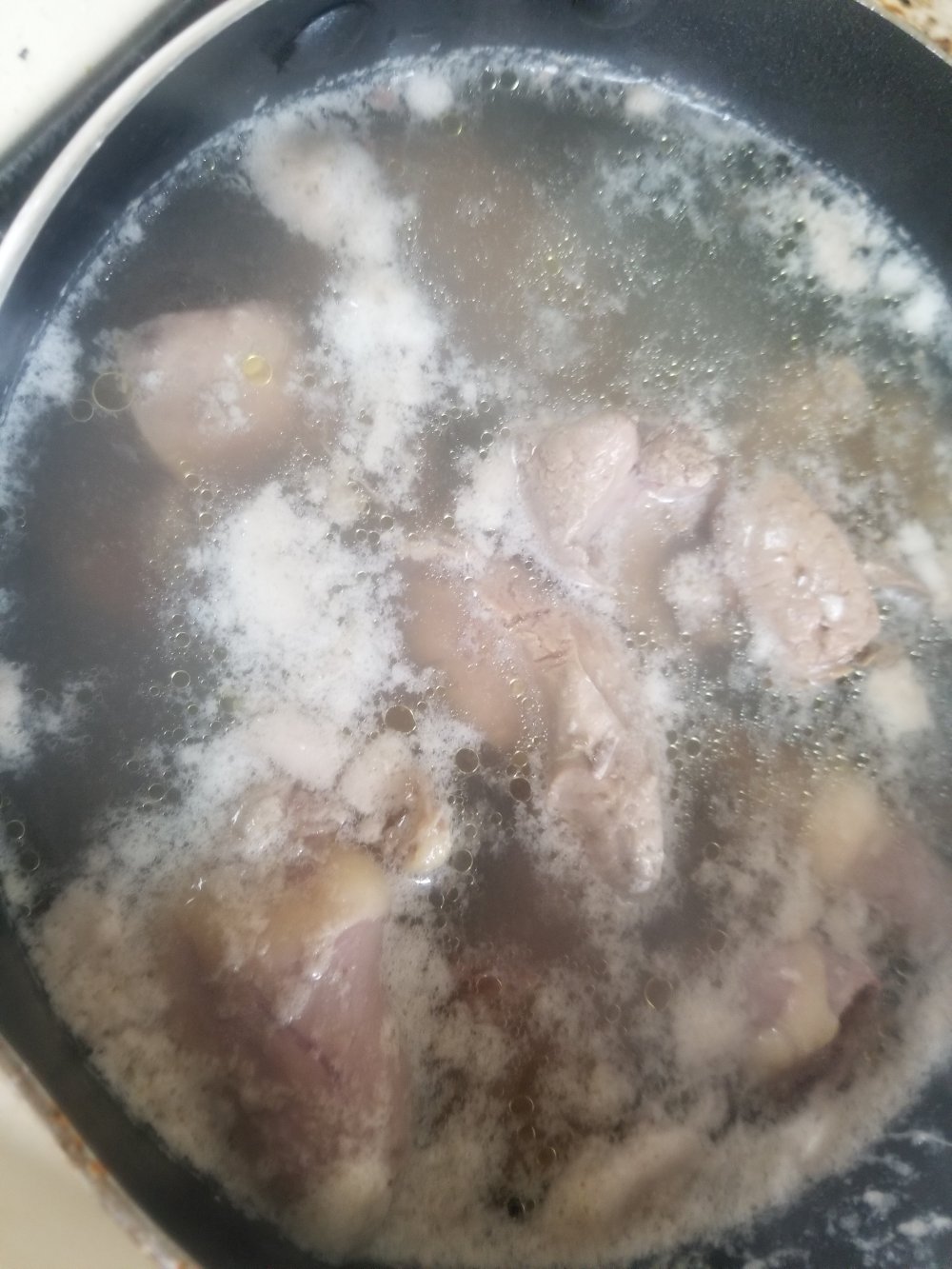 沸騰したら鶏レバーを入れて全体の色が変わるまで煮たらレバーを取り出し、さっと水洗いします。