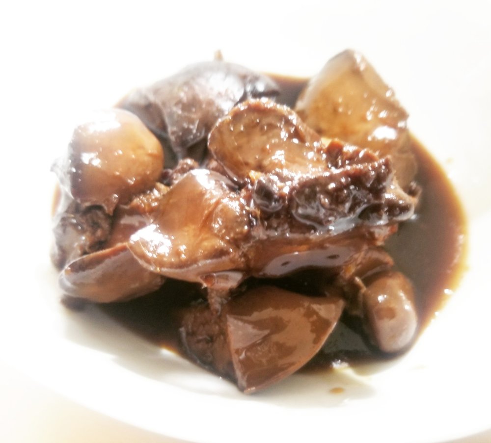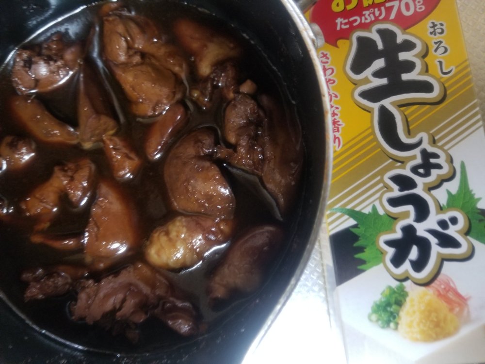 今回はモニタープレゼントの「ハウスおろし生しょうが」を使って、鶏レバーのウスターソース煮を作ってみました。