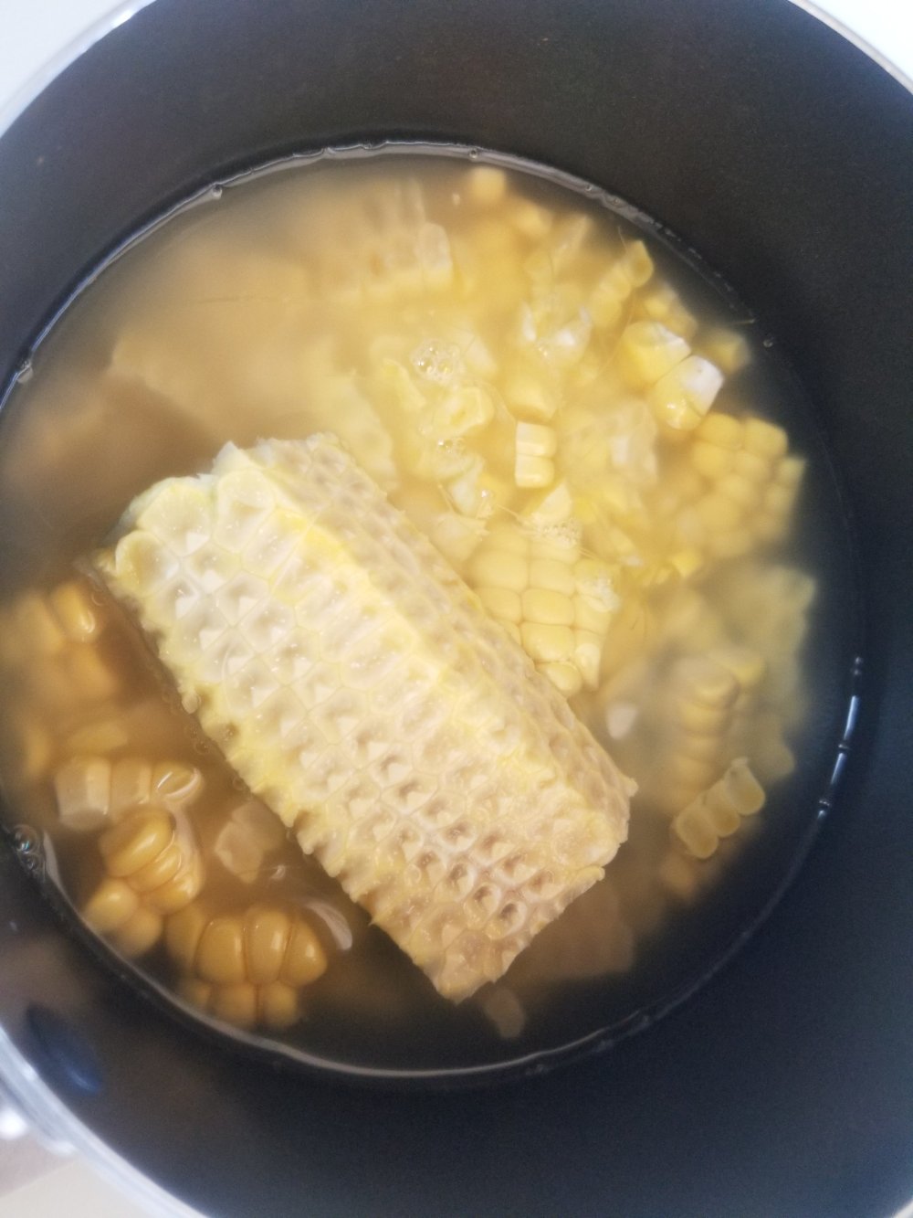 身をそぎ落とし、芯と一緒にコンソメで煮て、バターを溶かします。
