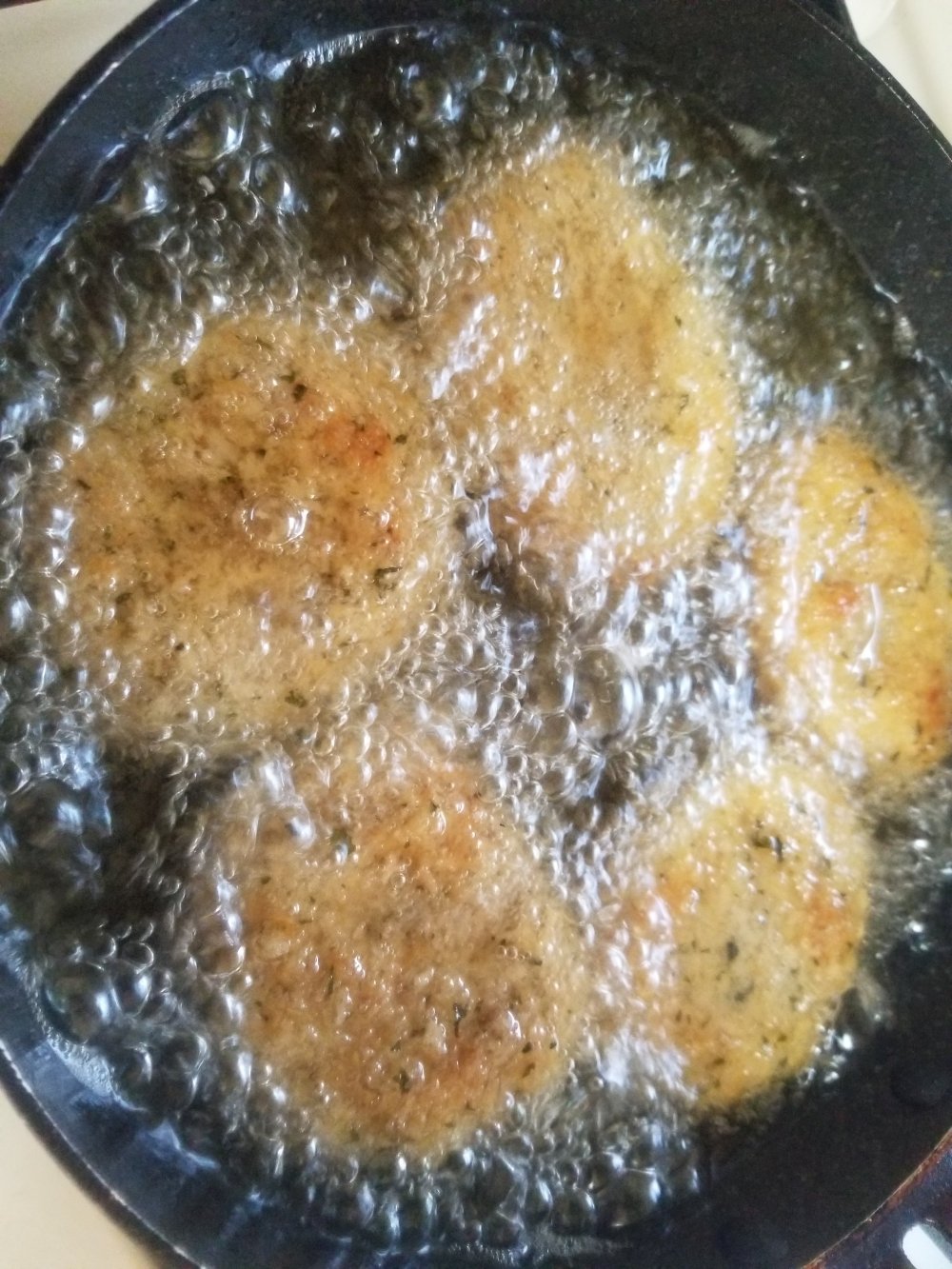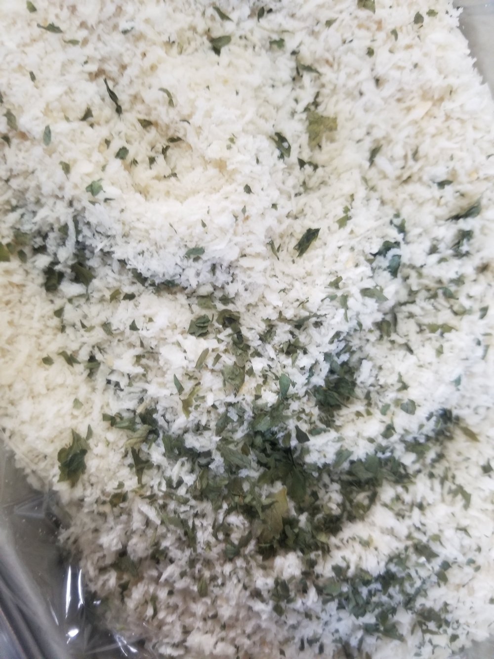 衣にはパン粉に乾燥バジルを混ぜた、ハーブパン粉を使います。