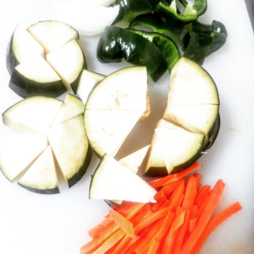 なすを食べやすい一口大にカットして、ピーマンも同様に。