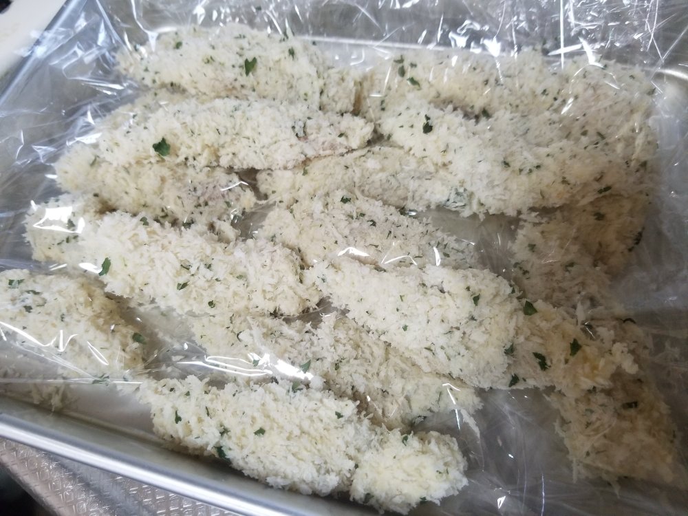 衣には乾燥バジルを混ぜた香草パン粉を使ってみました。