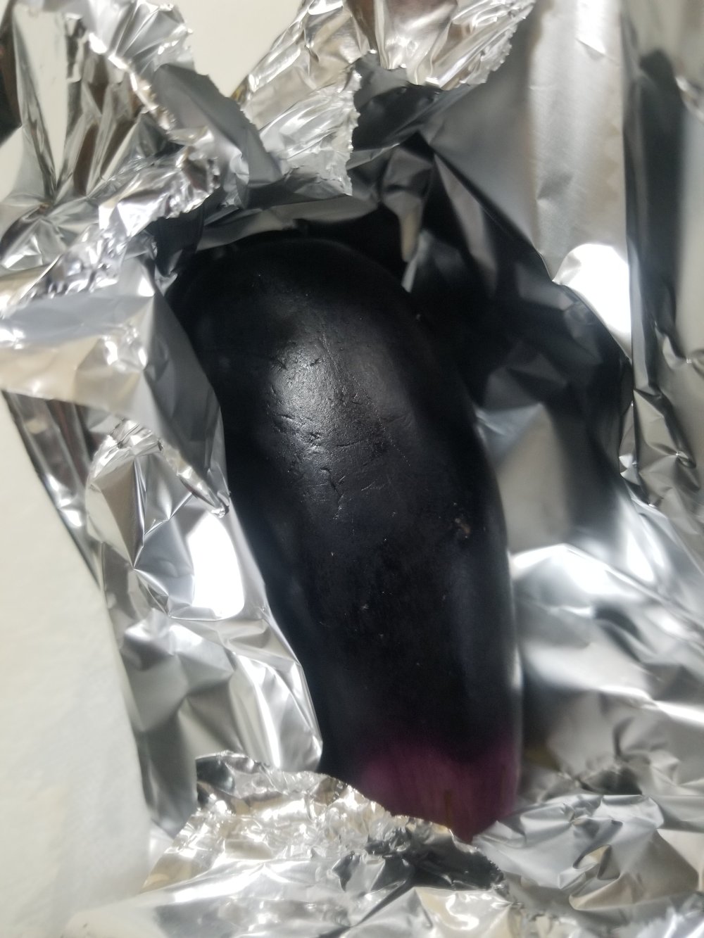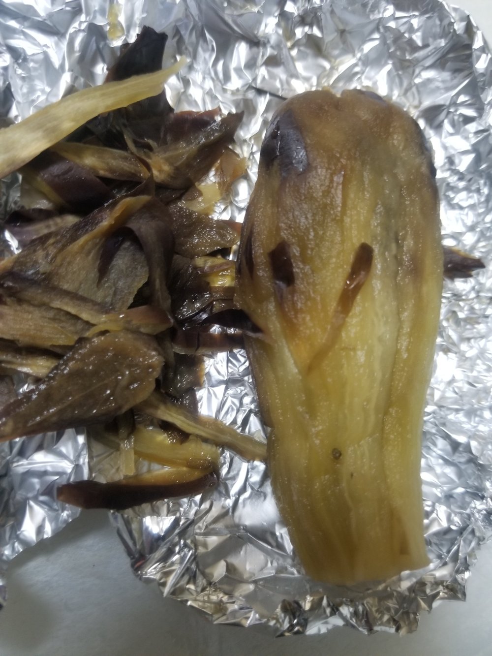 なすをアルミホイルに包み、