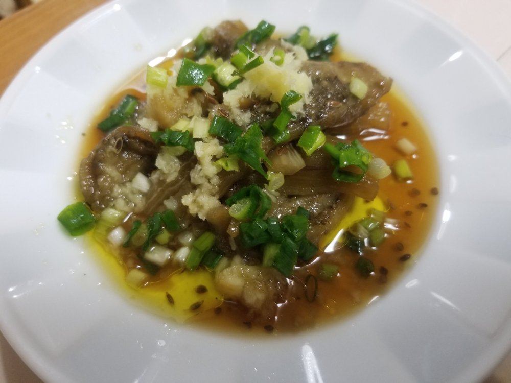 野菜だけの料理ですが、焼いた茄子の香ばしさと、オイルのコクが赤ワインによく合います。