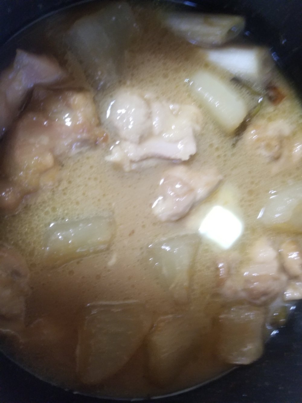 味が染みたら再び火にかけ、煮立ったらバターを溶かしいれます。