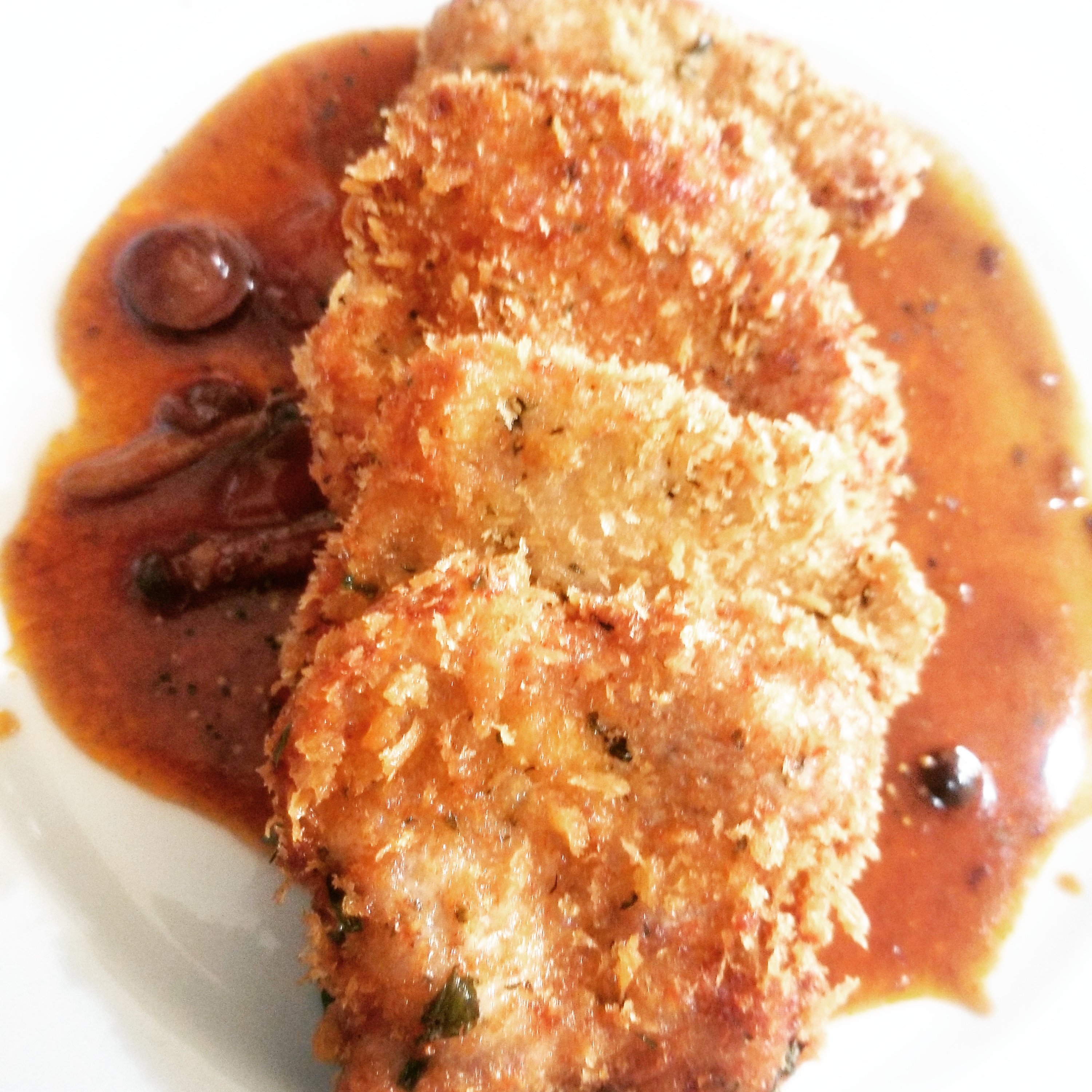 衣には乾燥ハーブをまぜこんだ香草パン粉を使います。