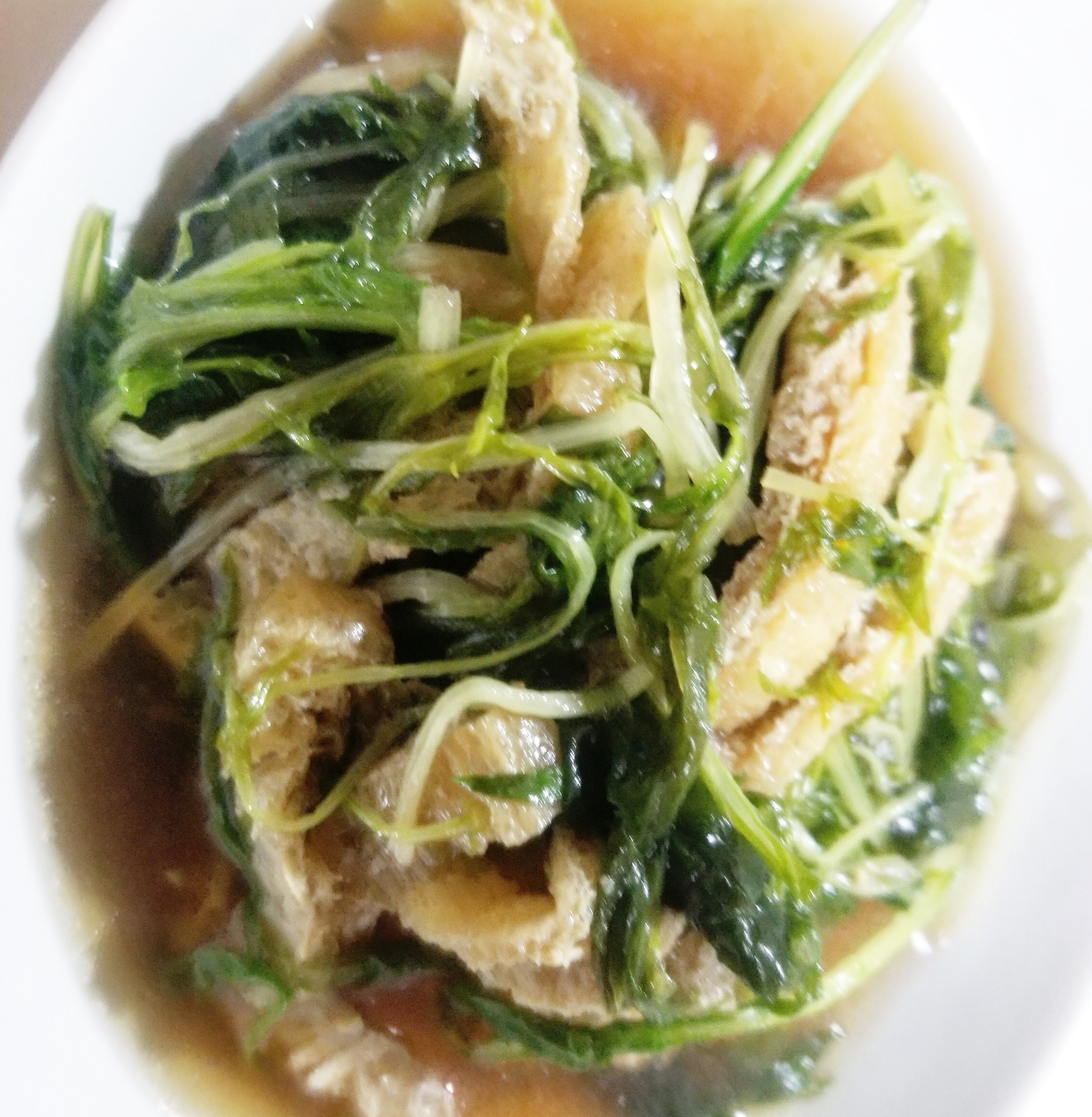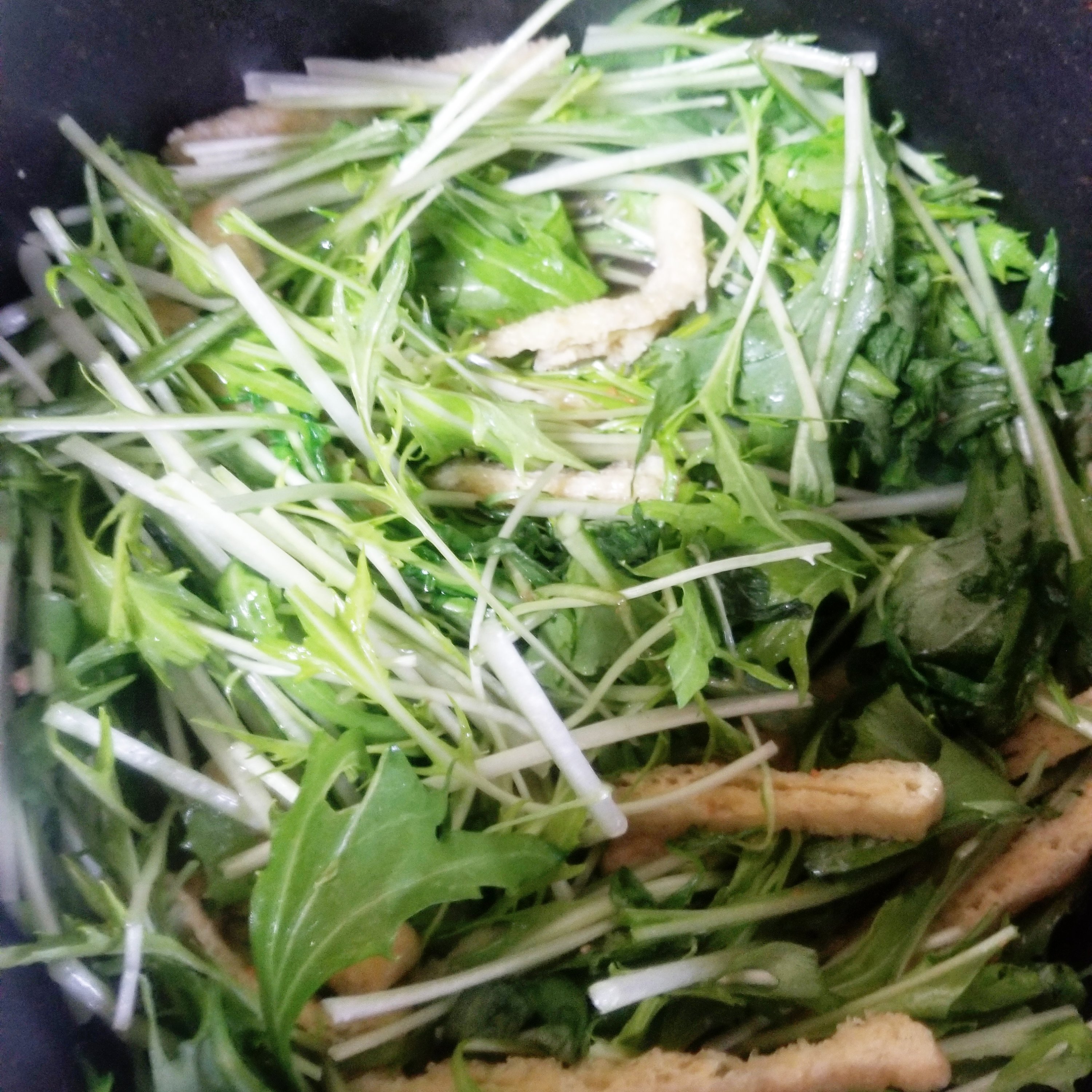 食べやすい長さに切った水菜と細切りの油揚げをさっと炒め、