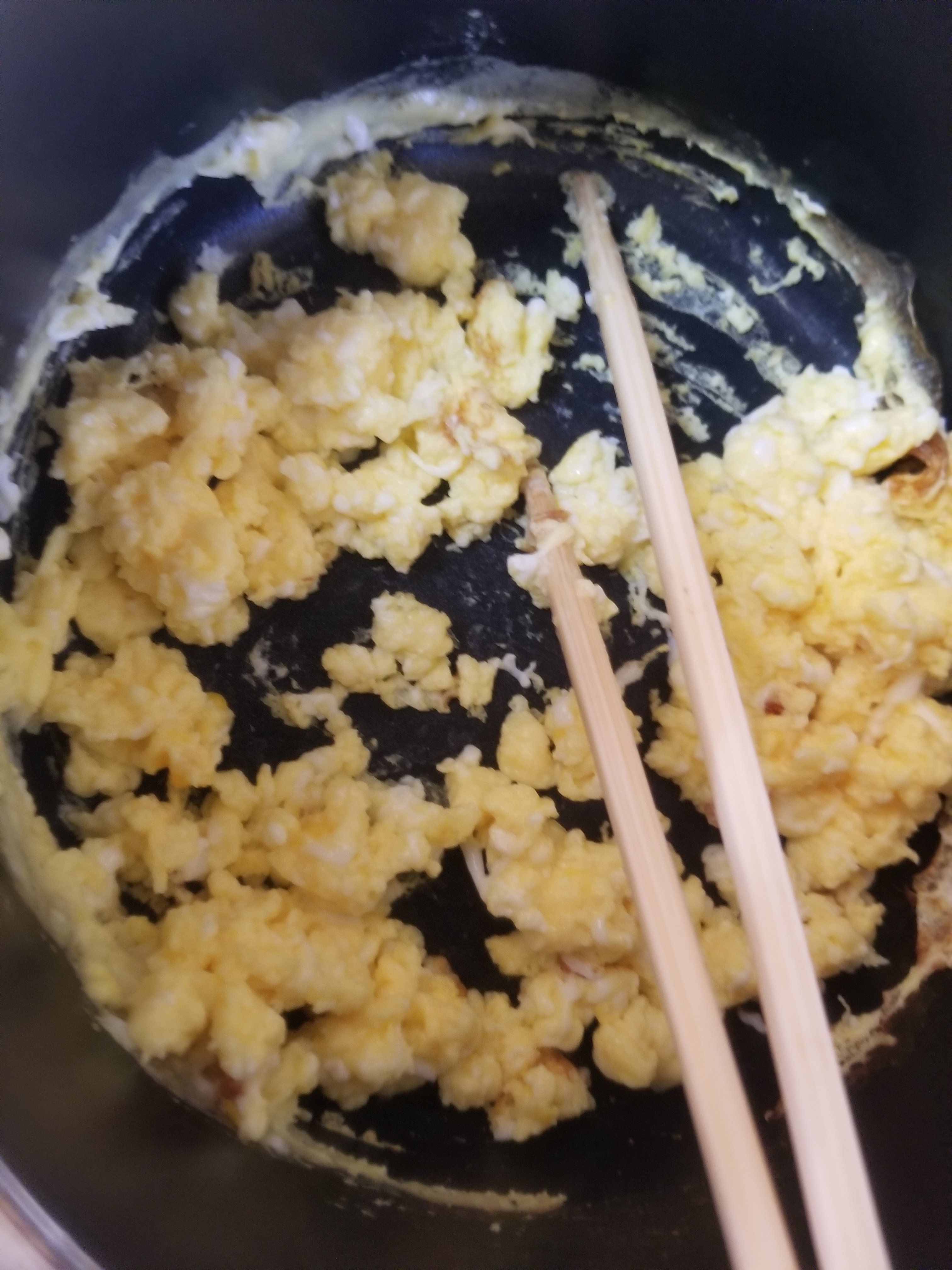 混ぜながら加熱してほろほろのいり卵を作ります。