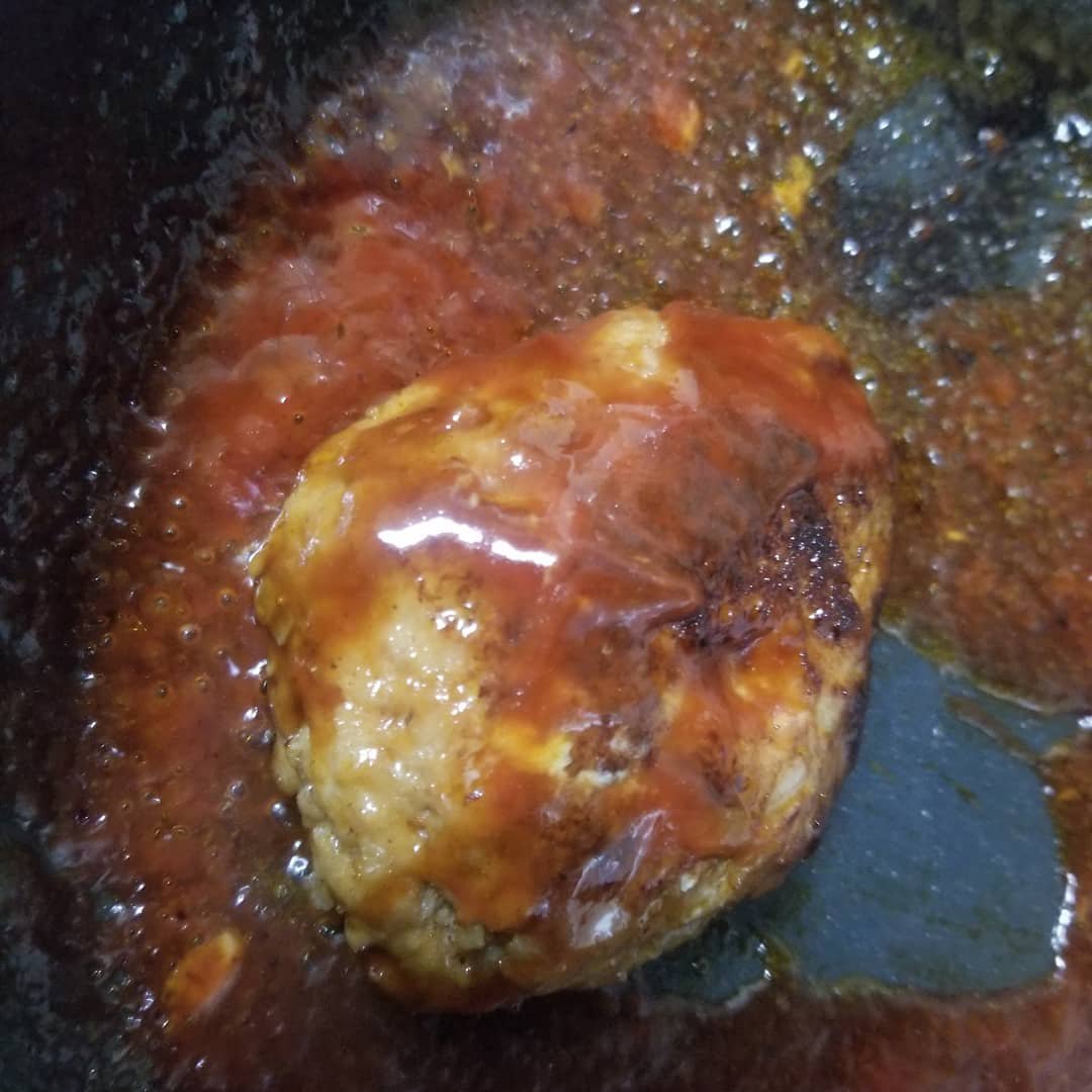 洋食屋さんだとデミグラスソースとなるところですが、家庭でのハンバーグソースは、焼汁の旨味をいかしてケチャップ、ウスターソース、とんかつソースでからめます。