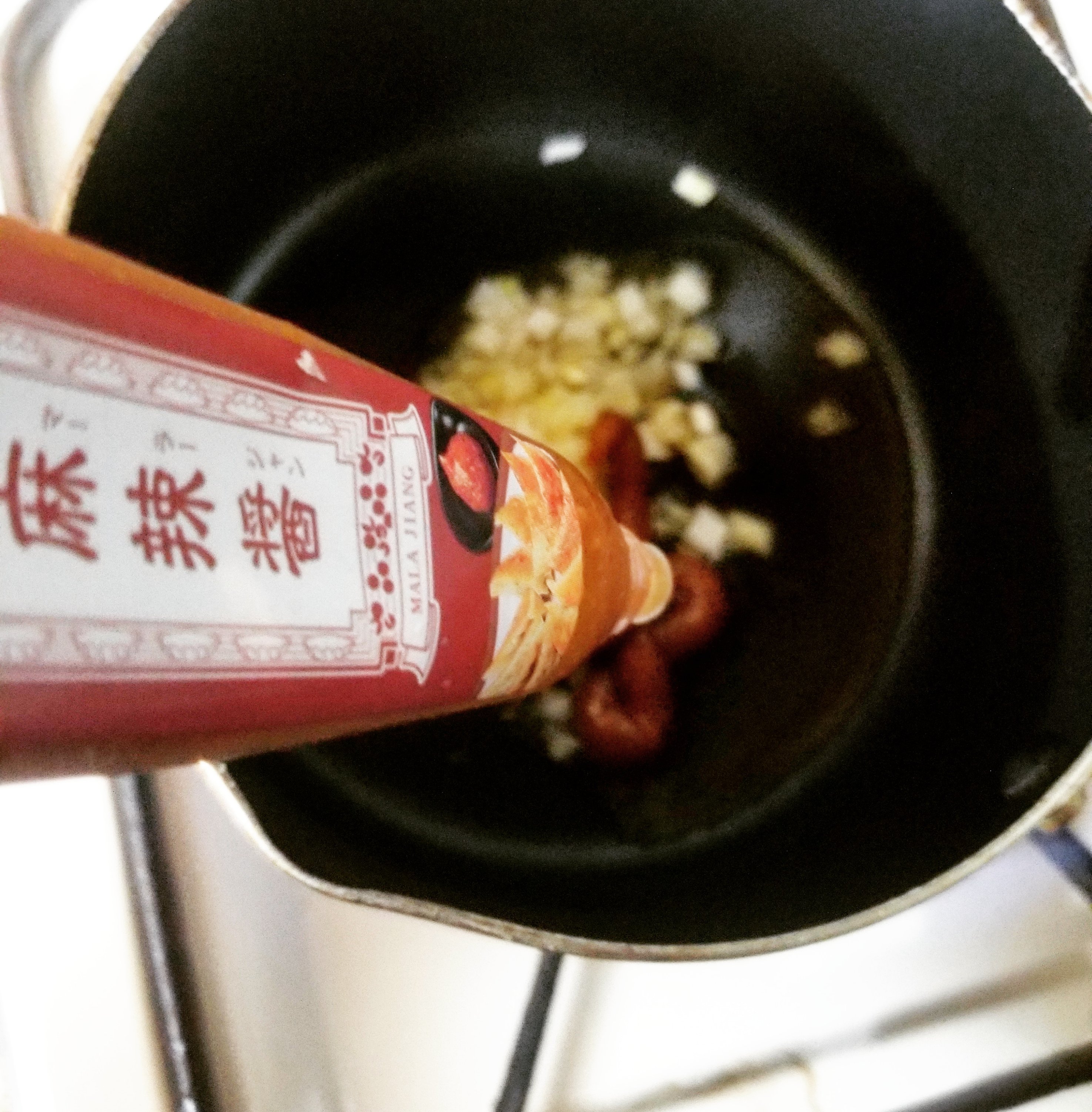 通常レシピだと、豆板醤や花山椒を使うところが、ハウス麻辣醤 一本でできるのが便利ですね。