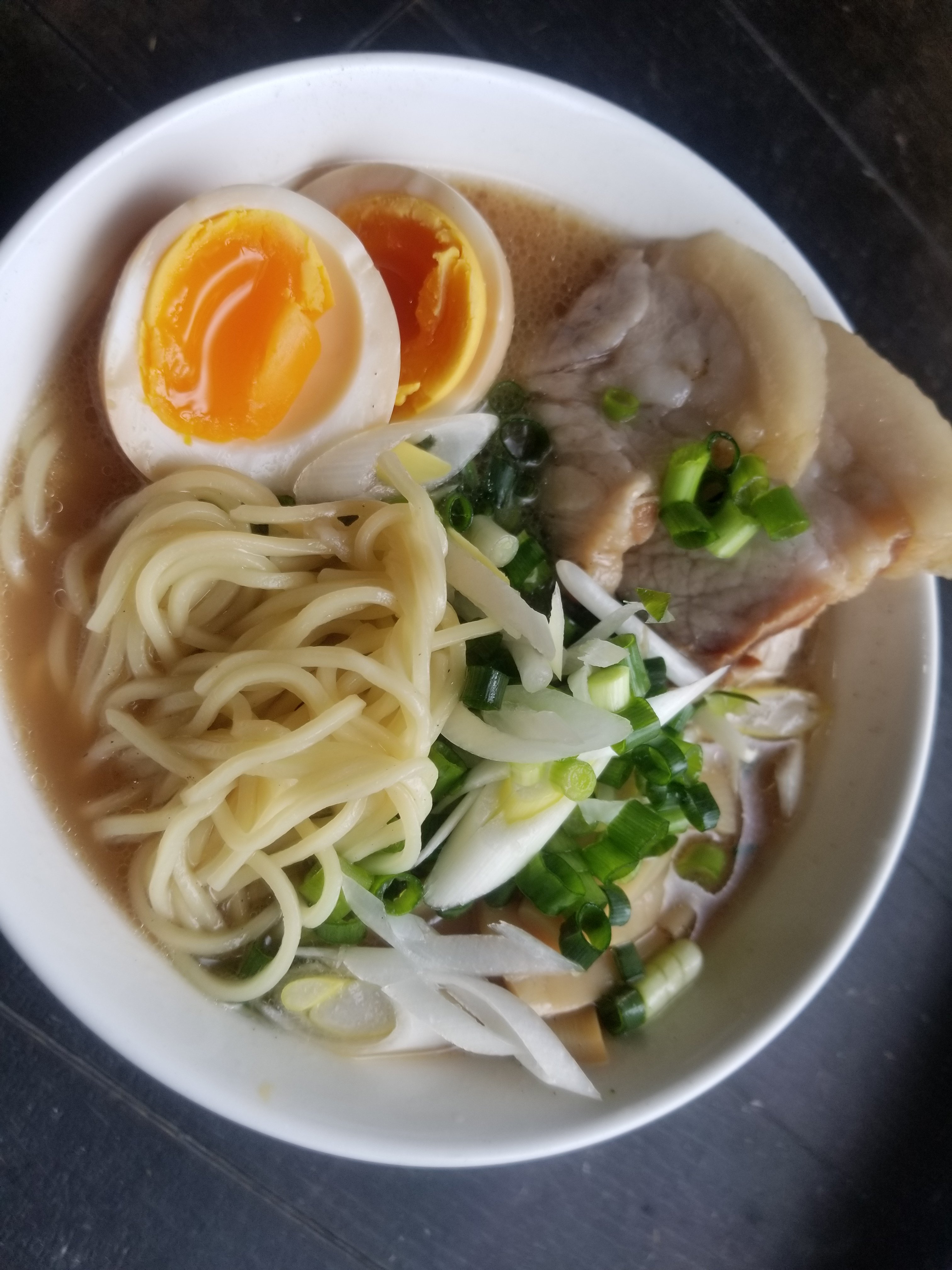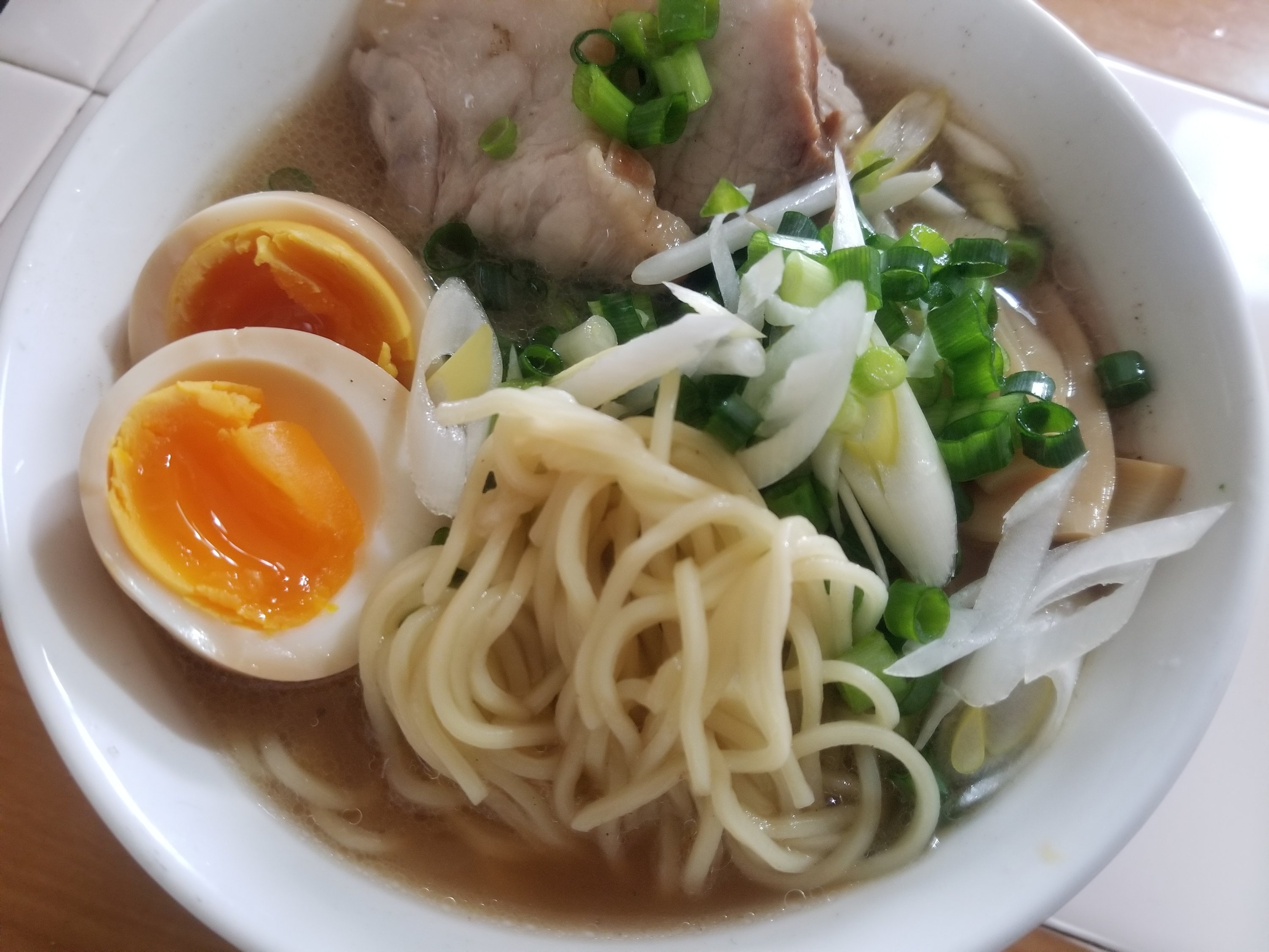 トッピングは自家製チャーシューと味玉、もやしにねぎ、メンマです。