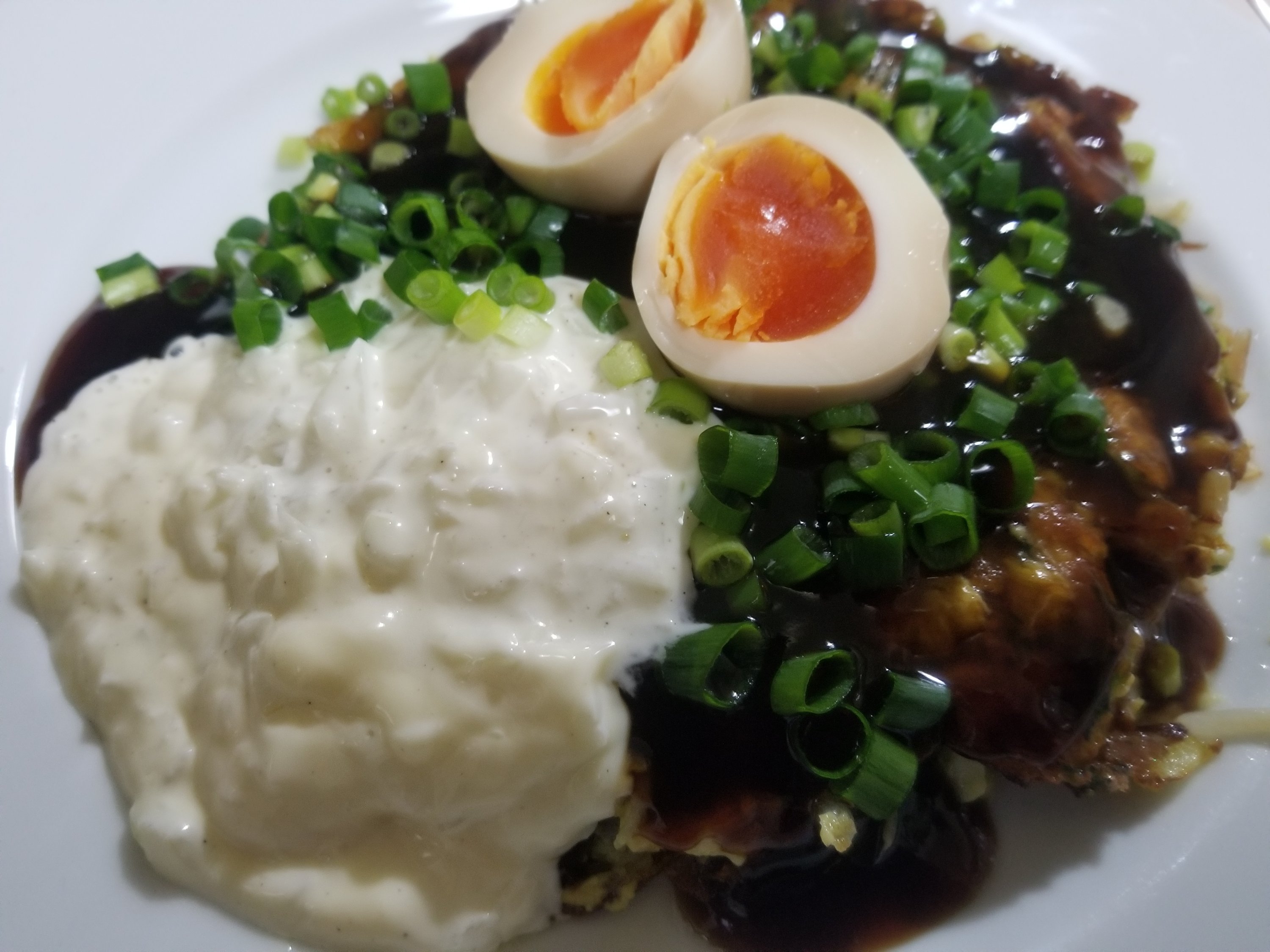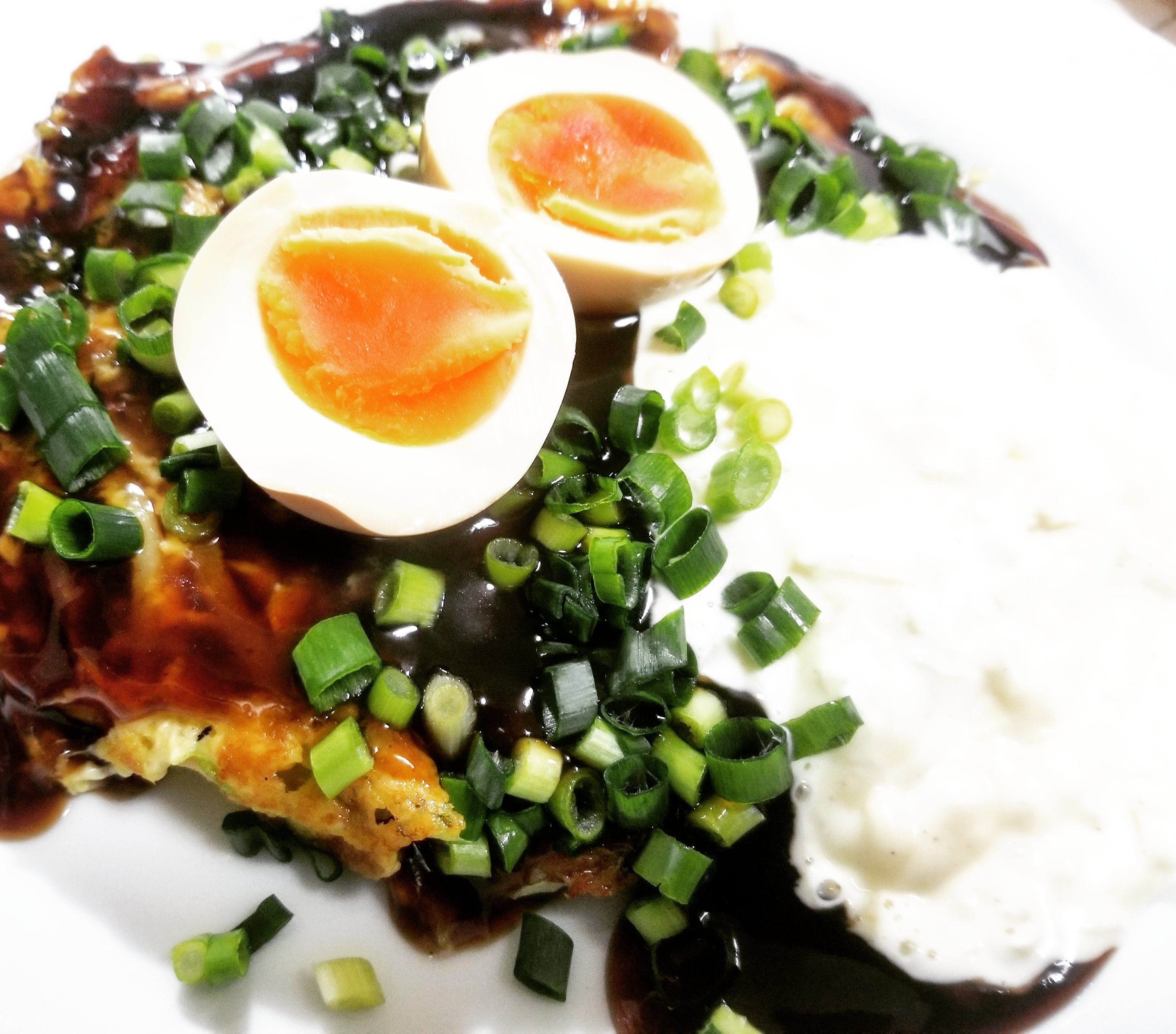 できあがりに、万能ねぎと自家製の味玉をトッピングしてみました。