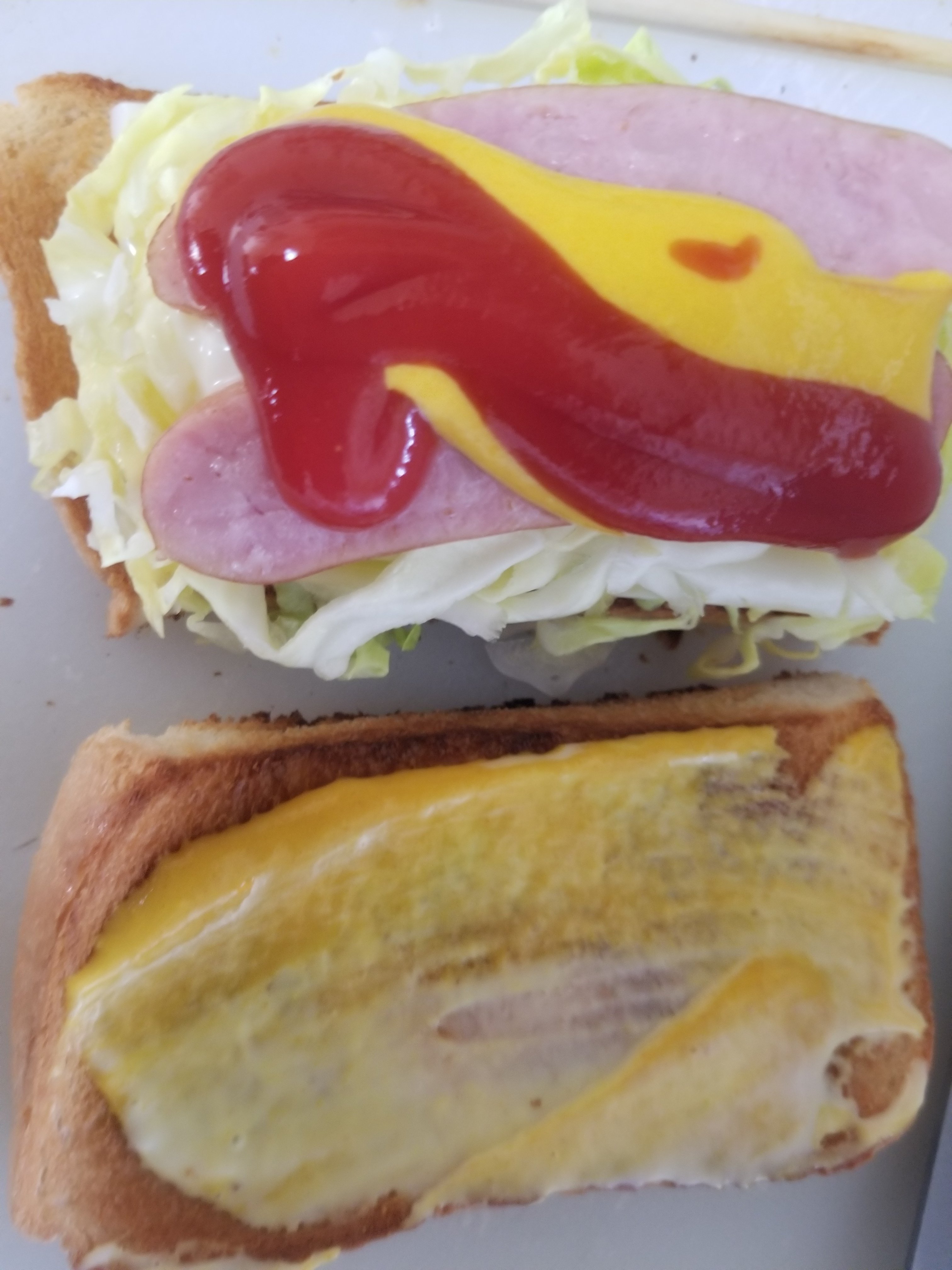 具をのせてないほうの食パンにはカラシマヨネーズを塗ります。