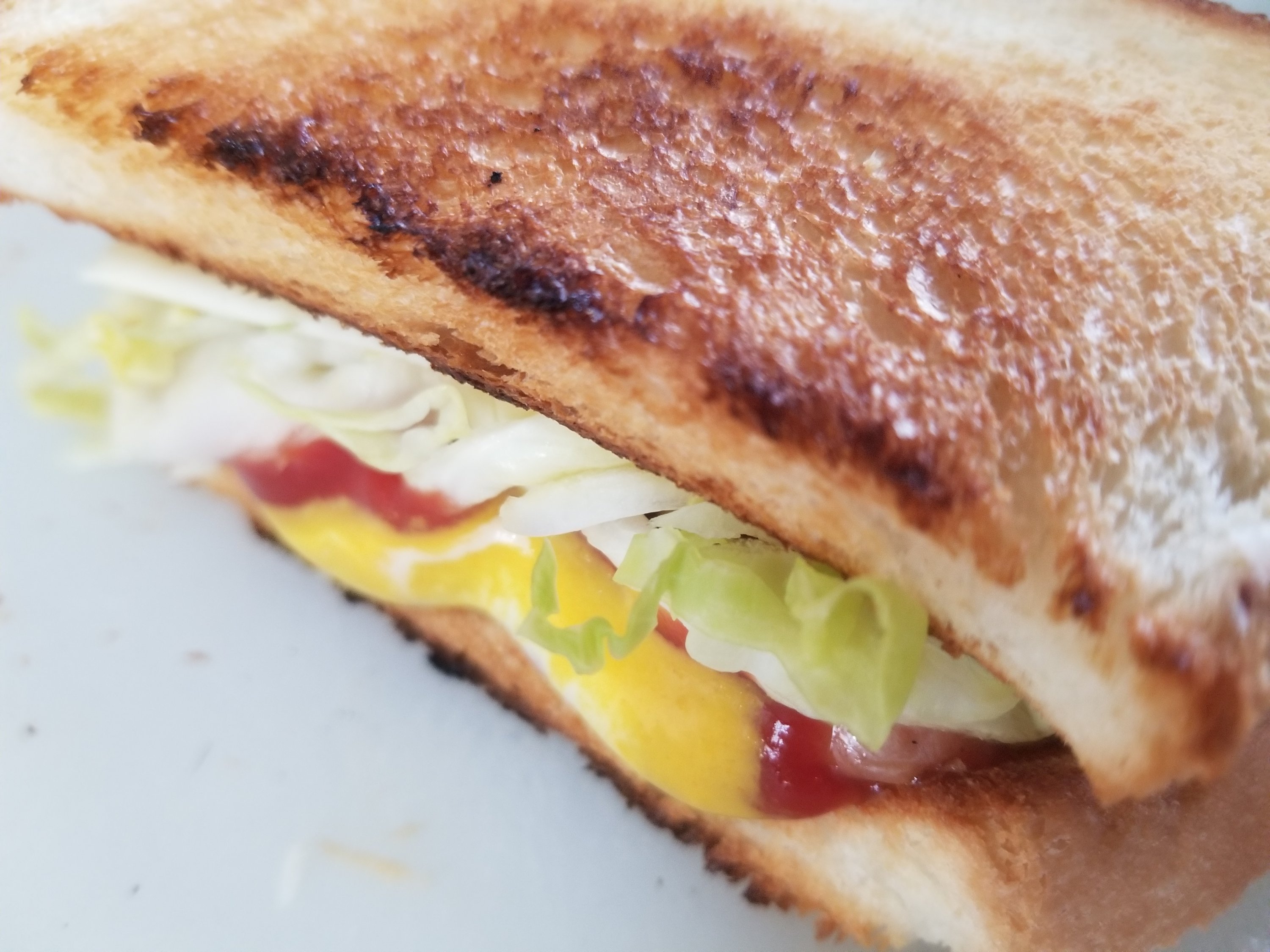 カリカリに焼いた食パンにキャベツたっぷり、シャウレンチンを挟んだホットドッグ風のトーストサンドです。