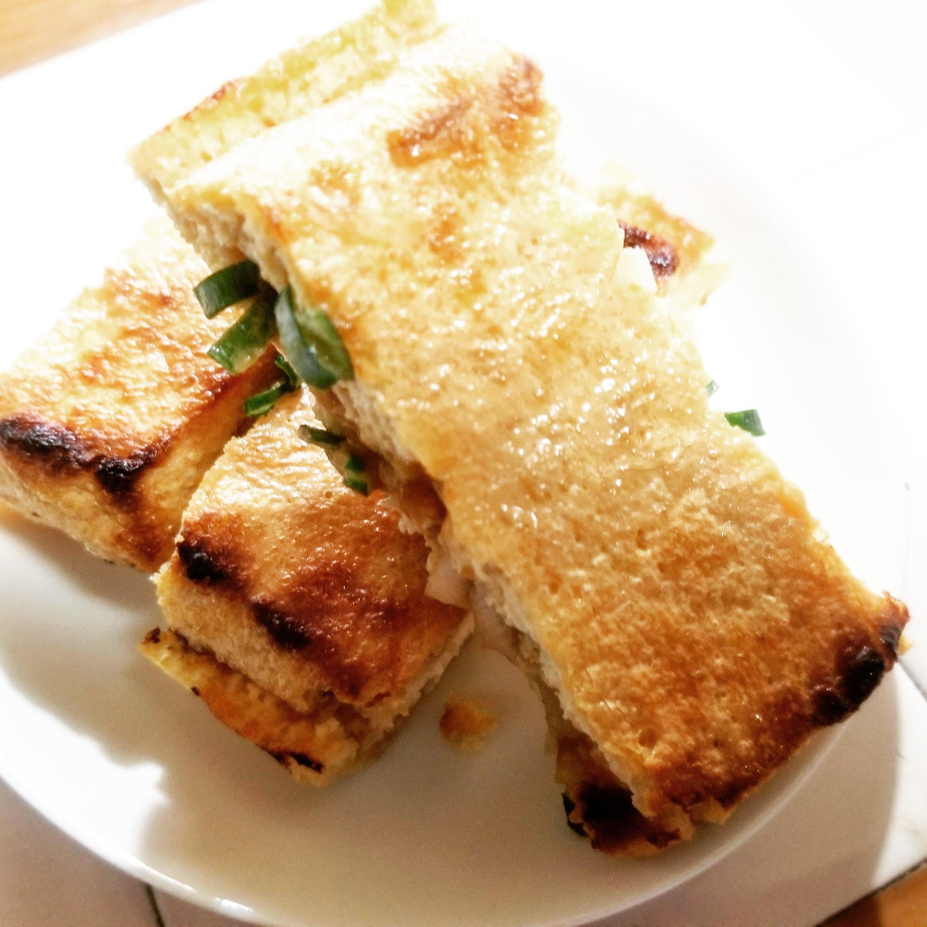 サンドイッチ風に挟んで、オーブントースターで色づくまで焼きます。