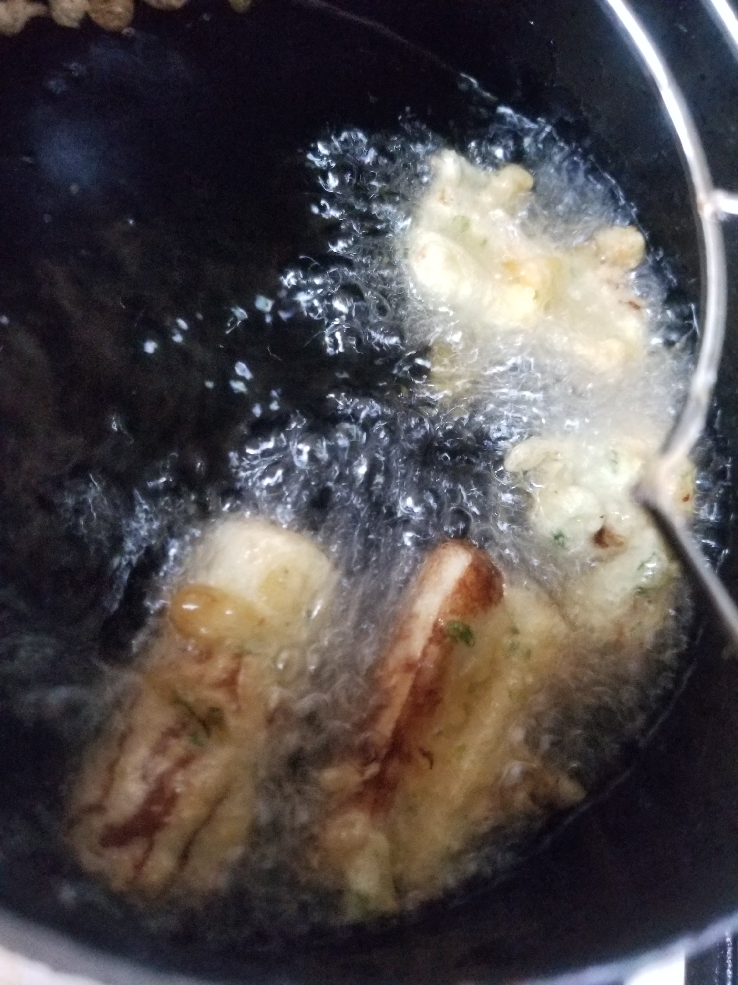 こちらも高温で衣が固まるまで手早く揚げます。