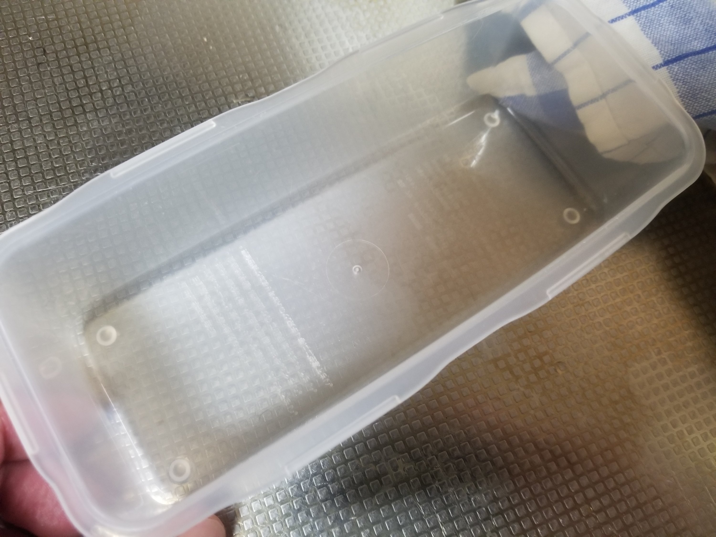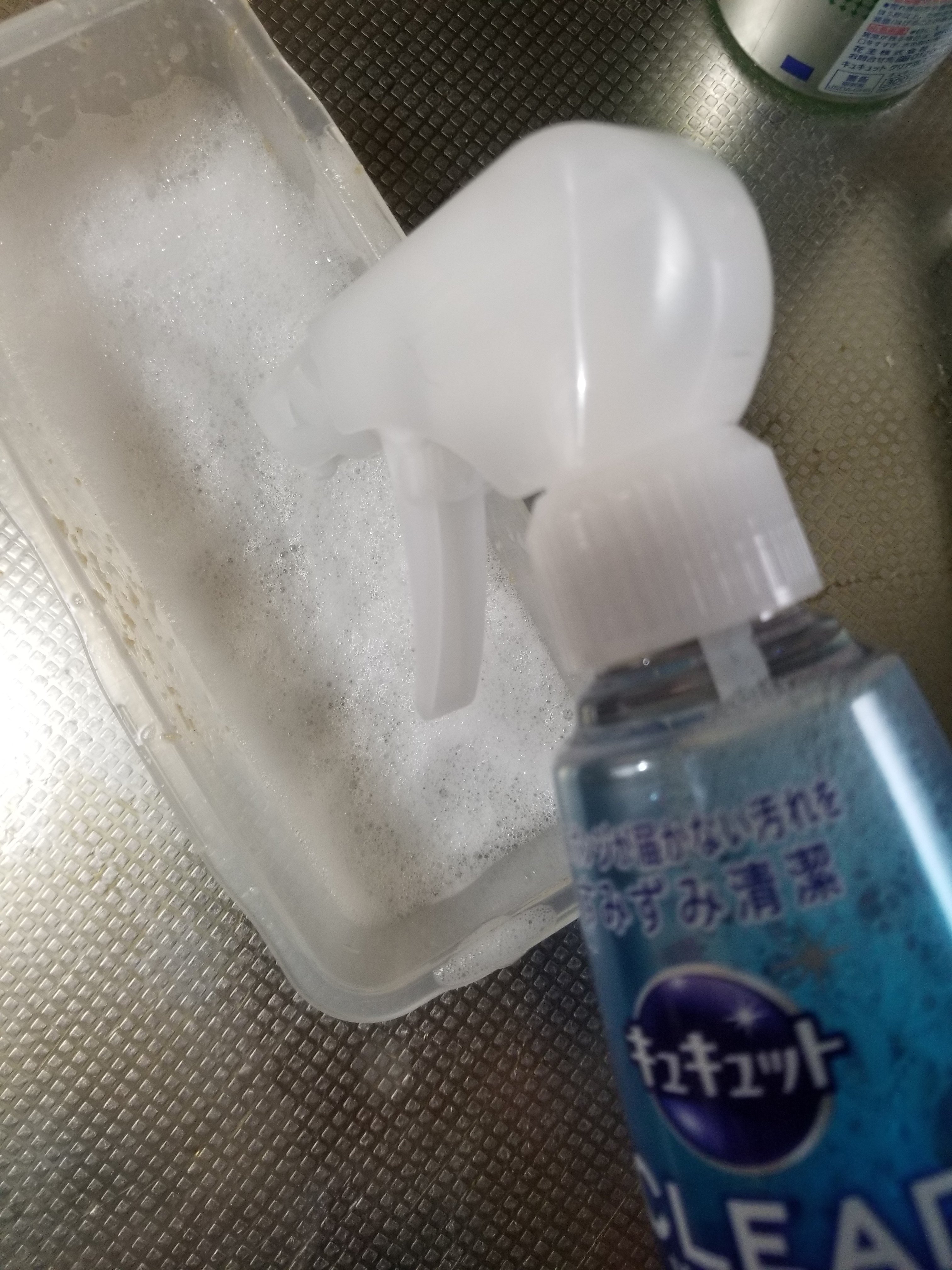 キュキュットCLEAR泡スプレーをお弁当箱にふきつけます。