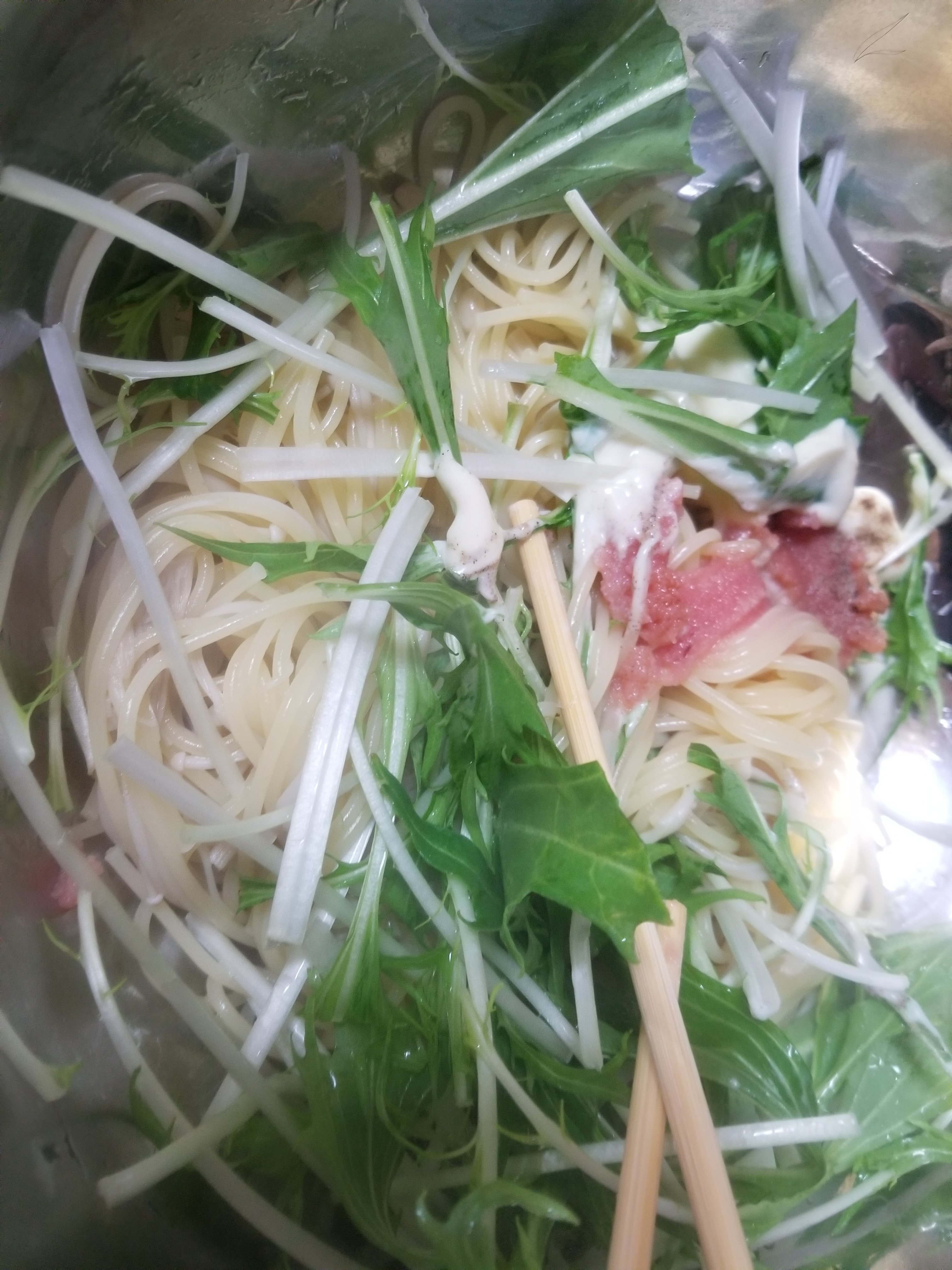 今回は水菜の緑と食感をアクセントにしてみました。