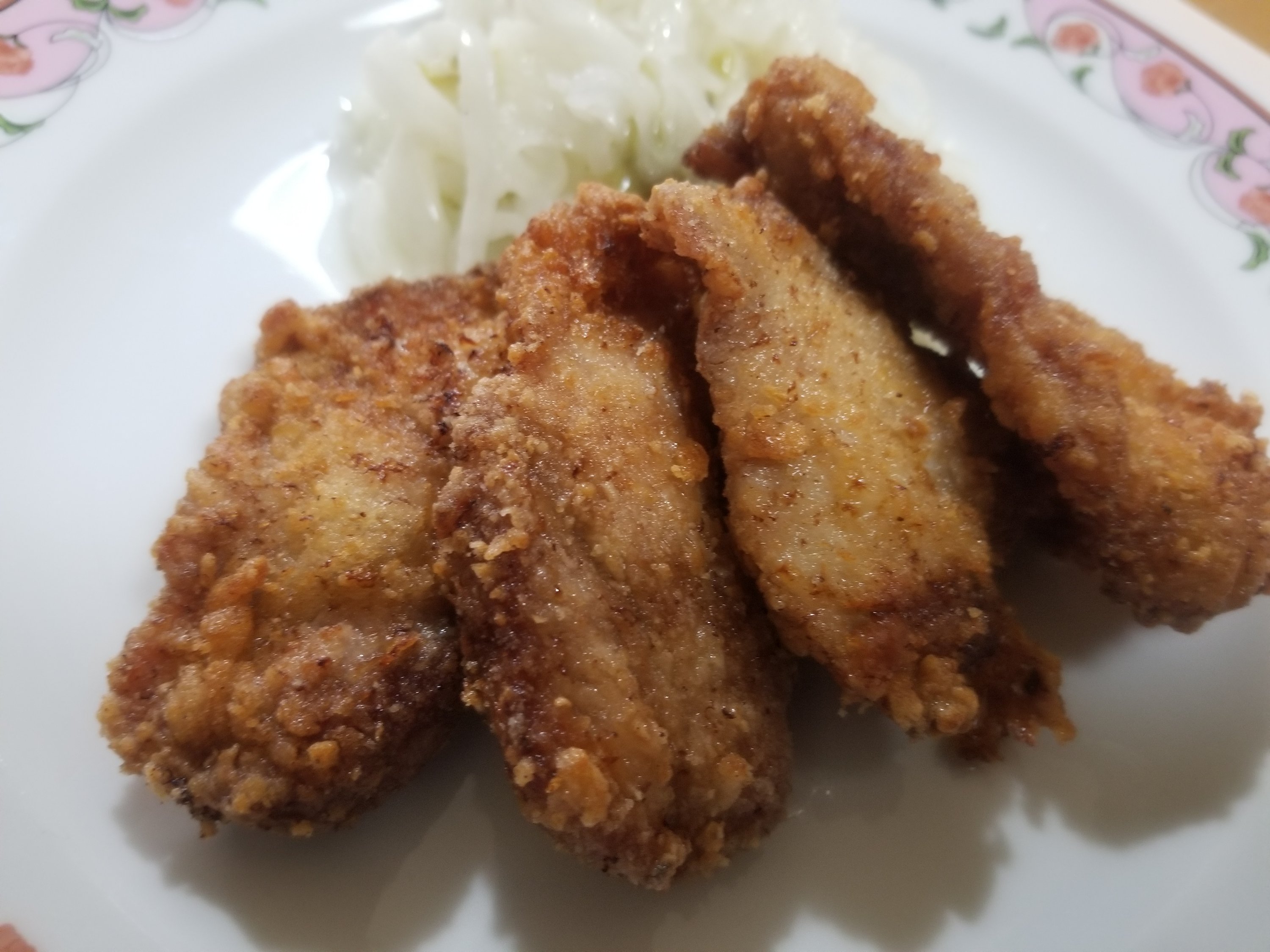 カリッとした衣の中から熱々でやわらかいヒレ肉の食感が、鶏肉とはまた違う味わいのヒレ肉の唐揚げの出来上がり。