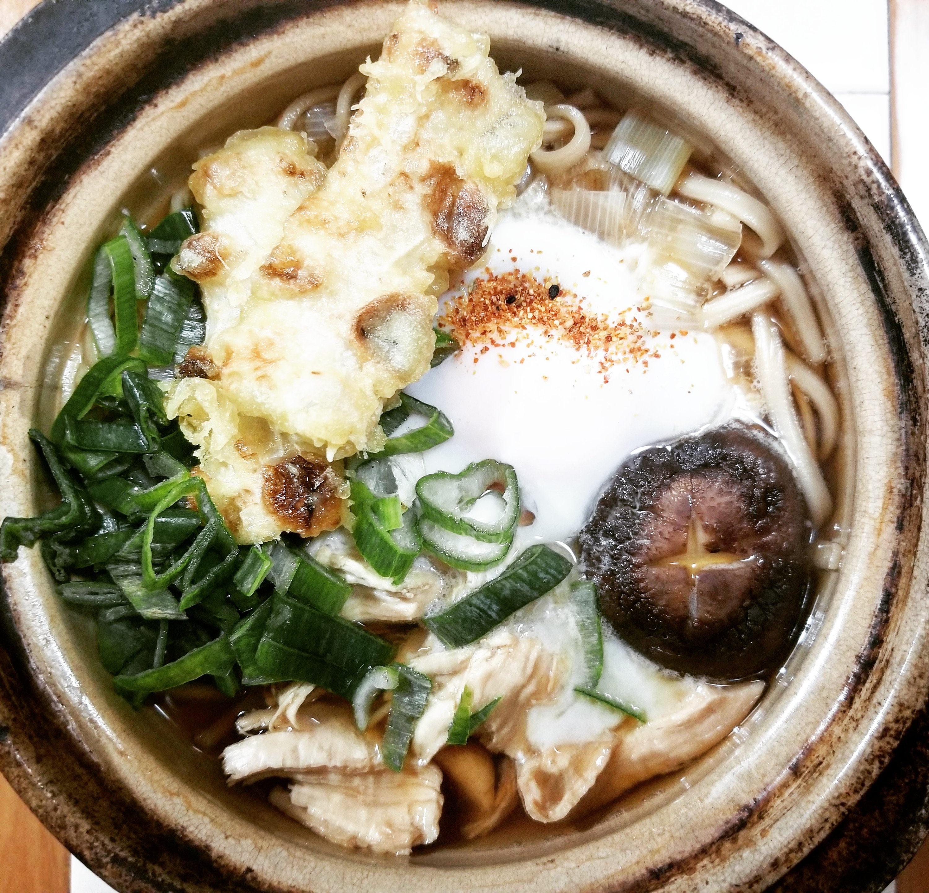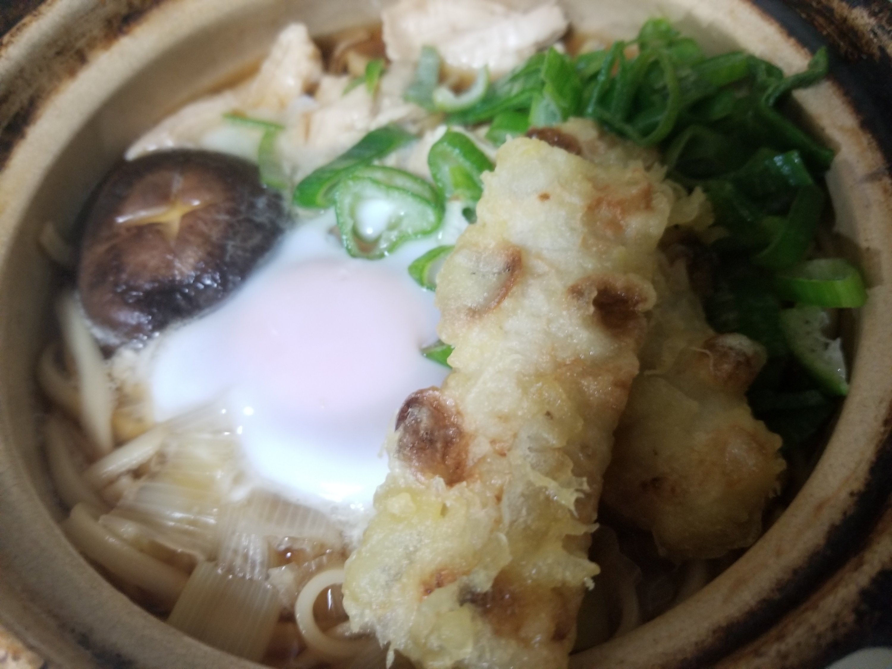 そんな中、冬だなぁって思うメニューの一つが鍋焼きうどん🍲