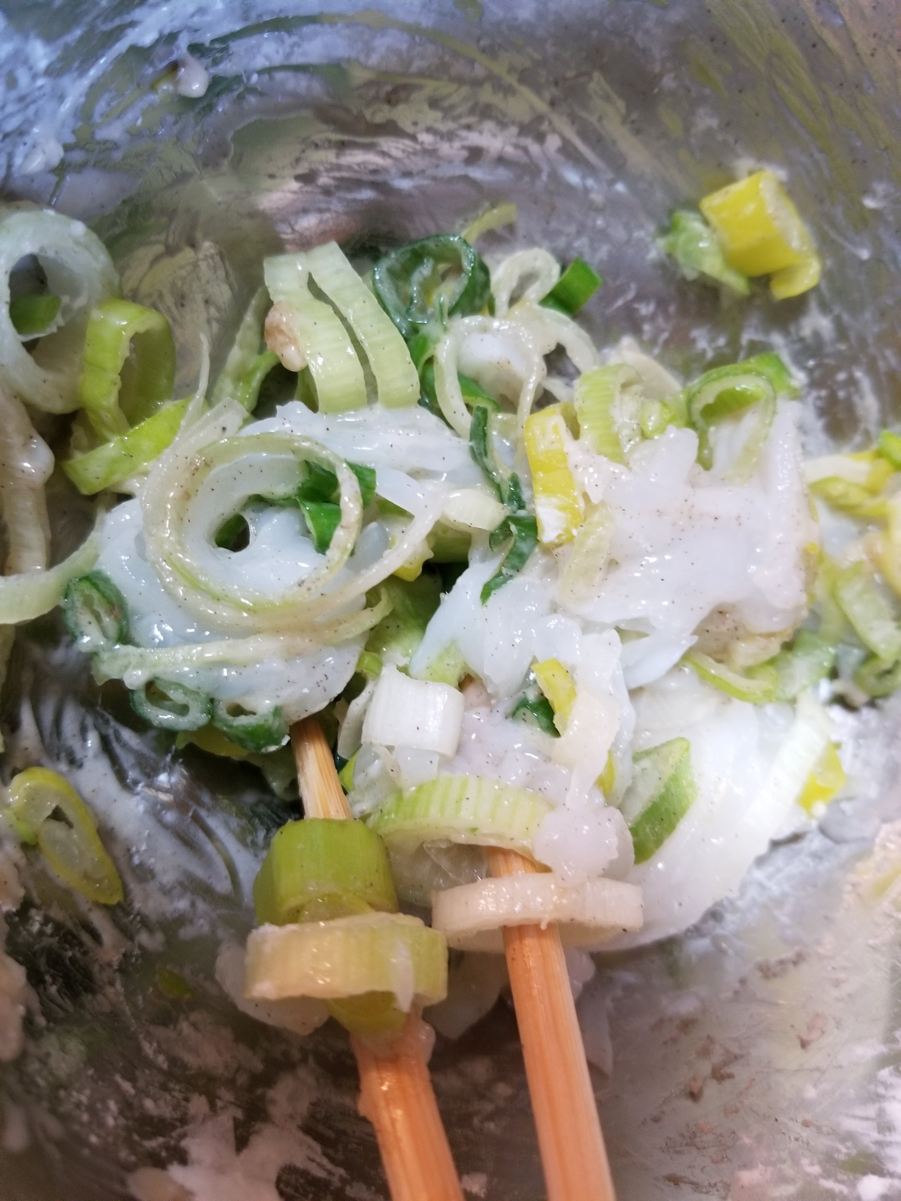 上からマヨネーズと万能をねぎを飾ります。