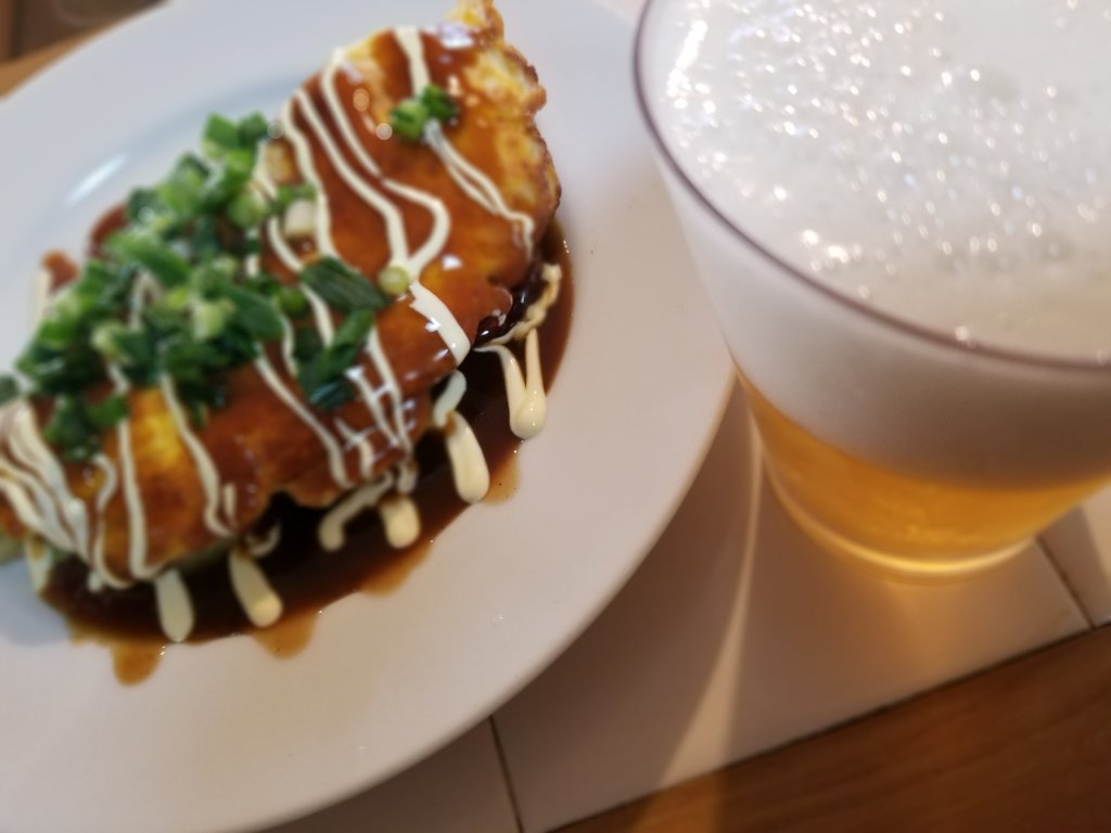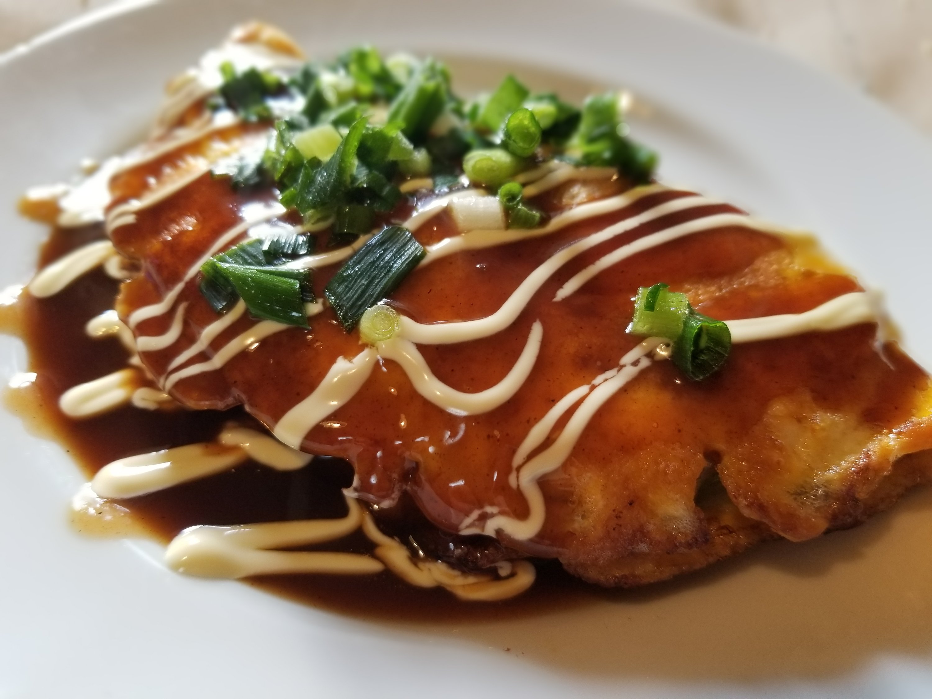 大阪の百貨店のテバ地下グルメとして人気の粉物の一種で、薄いクレープのような生地でイカを挟む感じに焼き上げています。