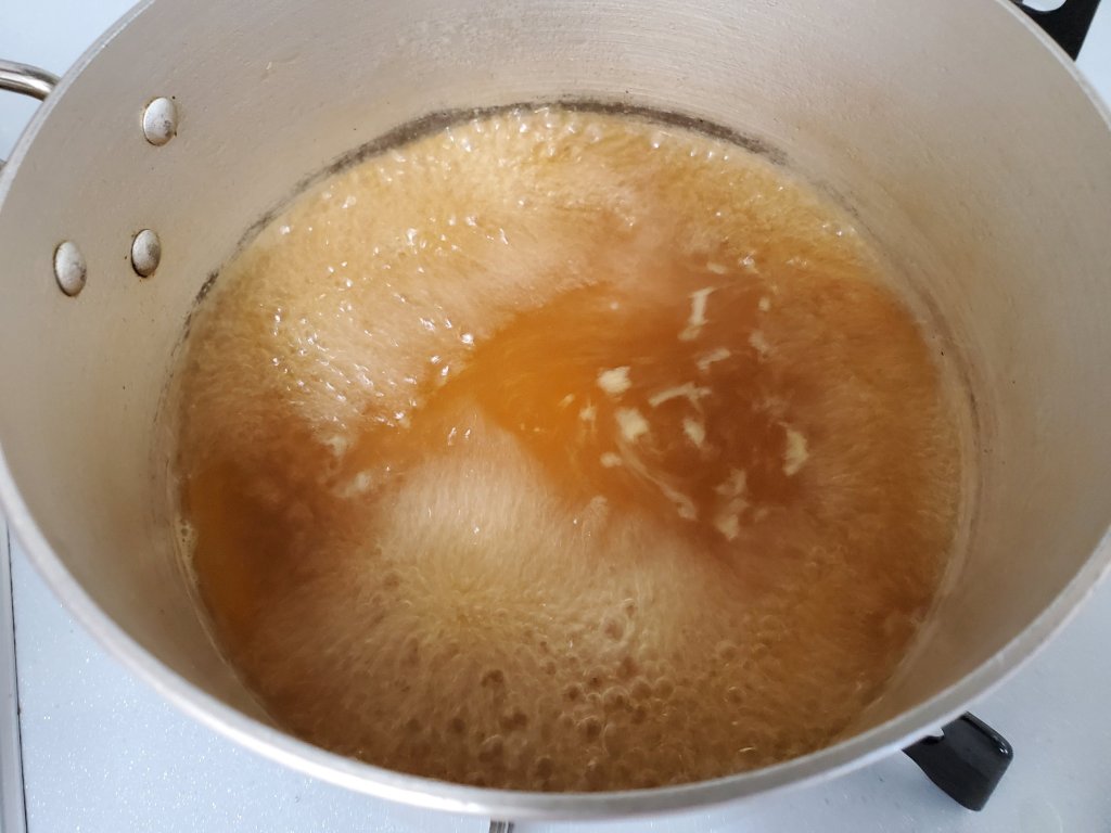 鍋底に砂糖がこびりつかないようよく混ぜて
