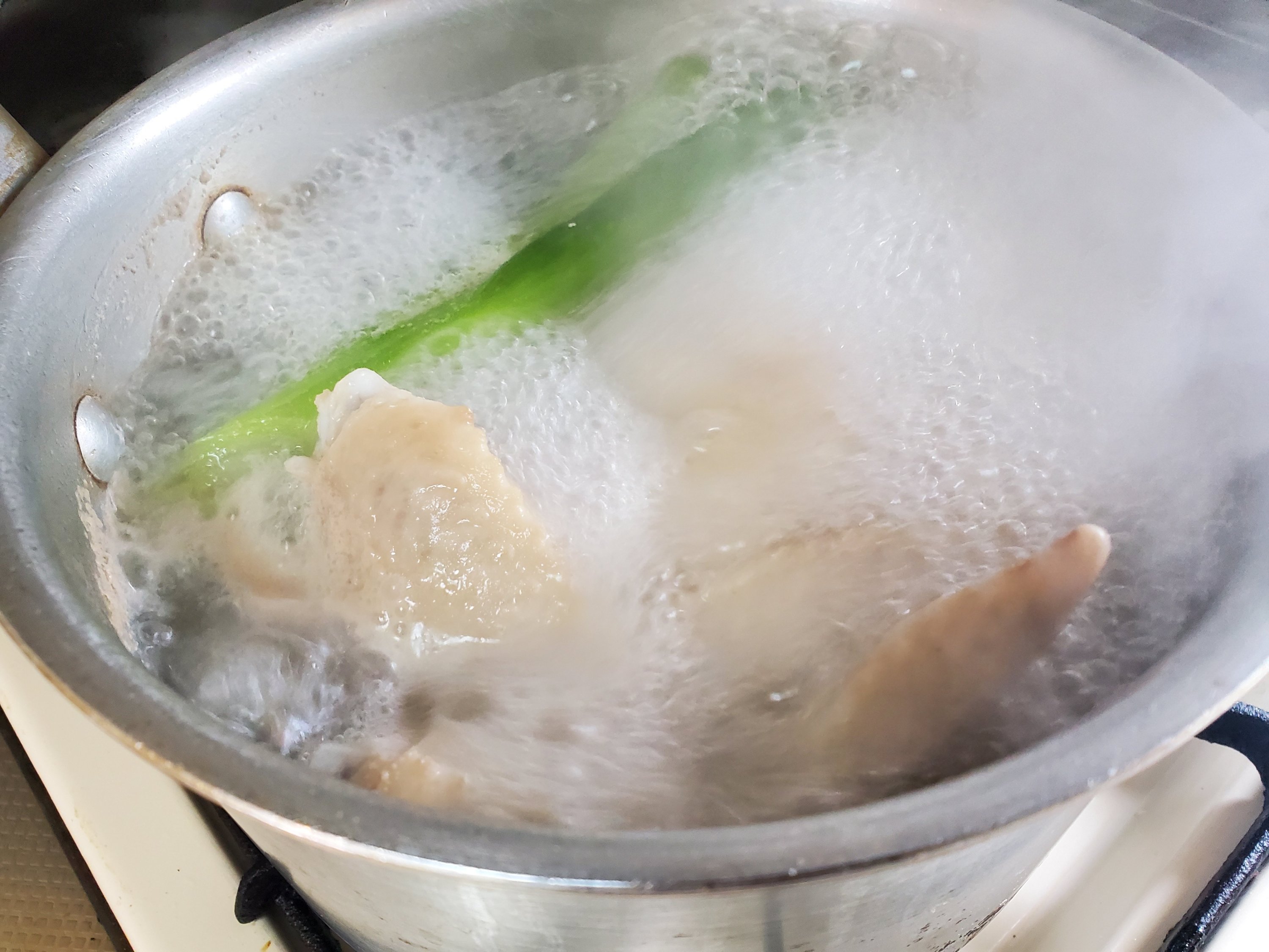 続いて、今回の美明豚チャーシューに次ぐこだわりのポイント、鶏出汁をとっていきます。