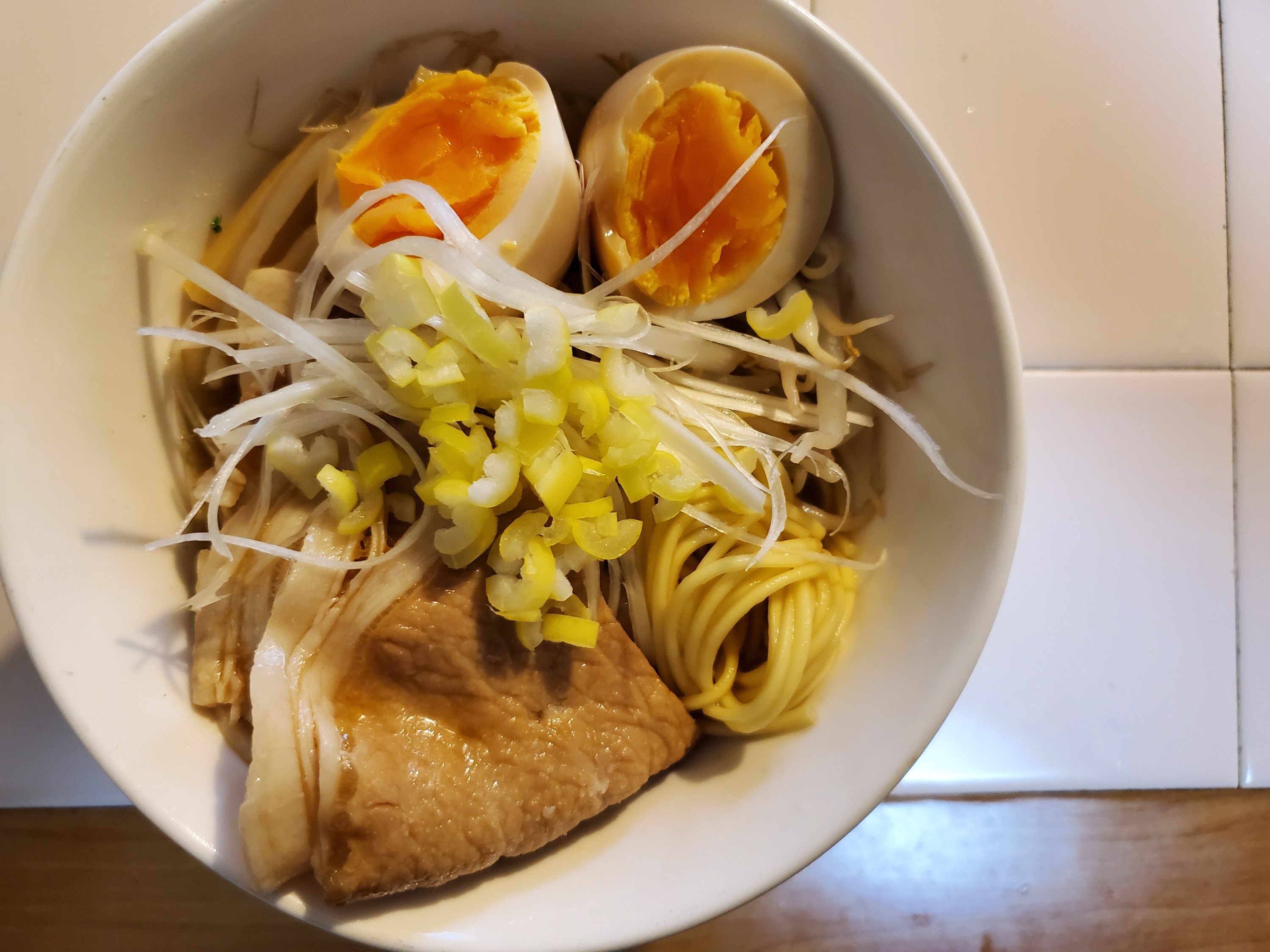 ラーメンは市販の乾麺を使いますが、チャーシューをはじめのトッピングとスープを自家製で作ります。