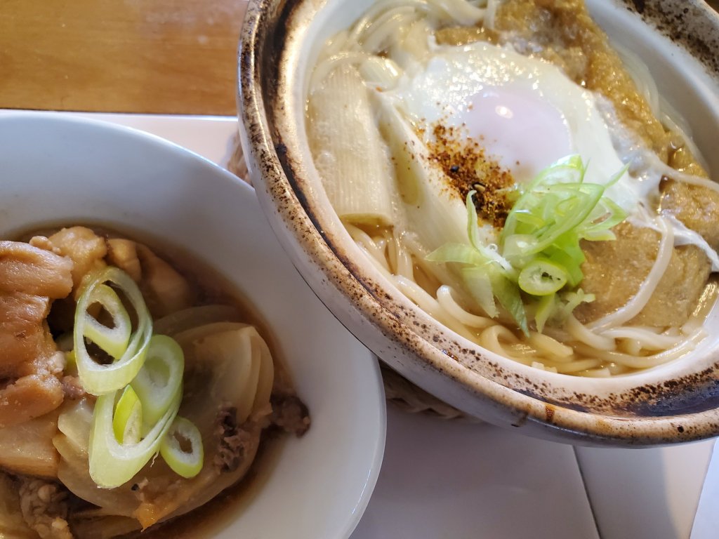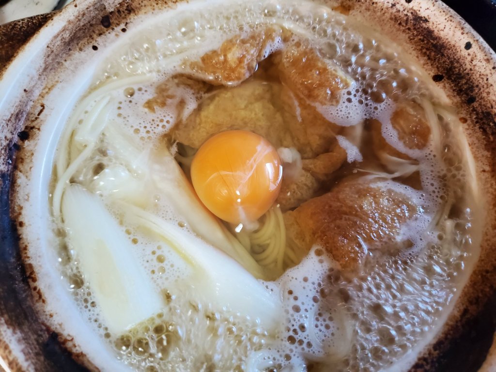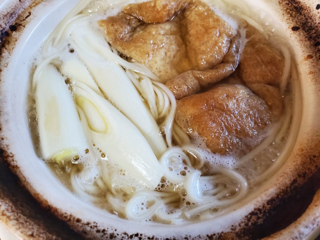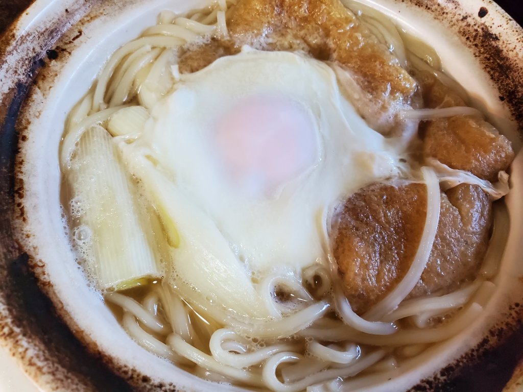 なんとなく土鍋をしまい損ねていたら、ふときつねうどんを鍋焼きにしたくなりました。