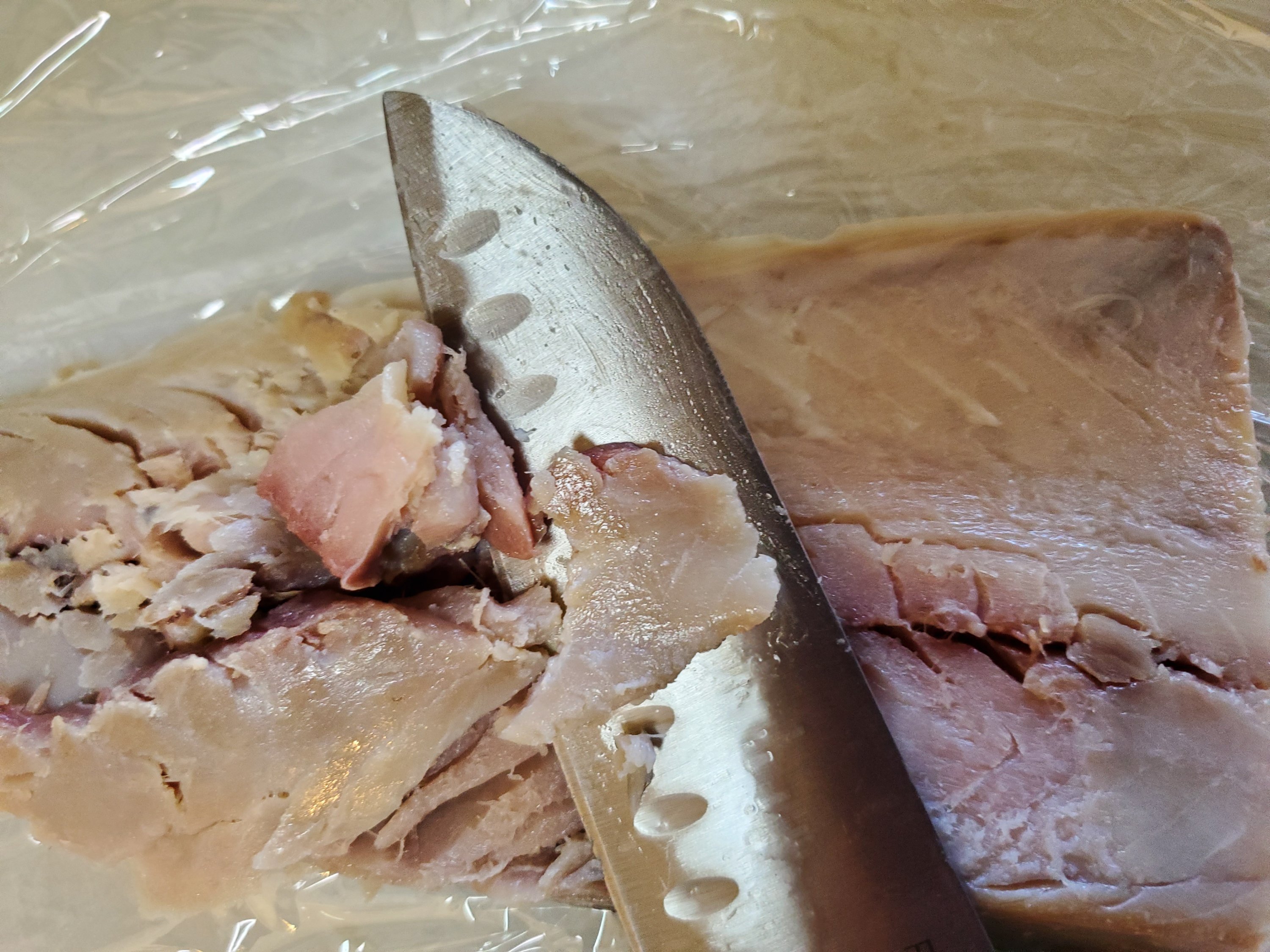 朧おぼろ昆布を削った残りの黄白色の部分。薄く削ってサバの押し鮨ずしなどに使う。