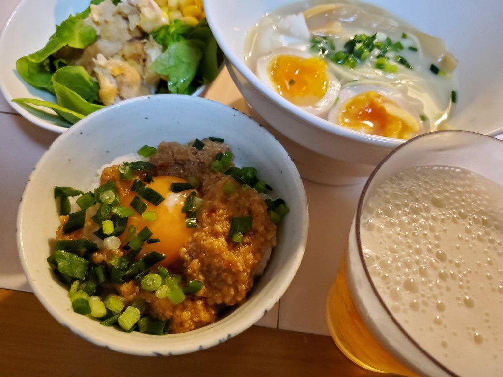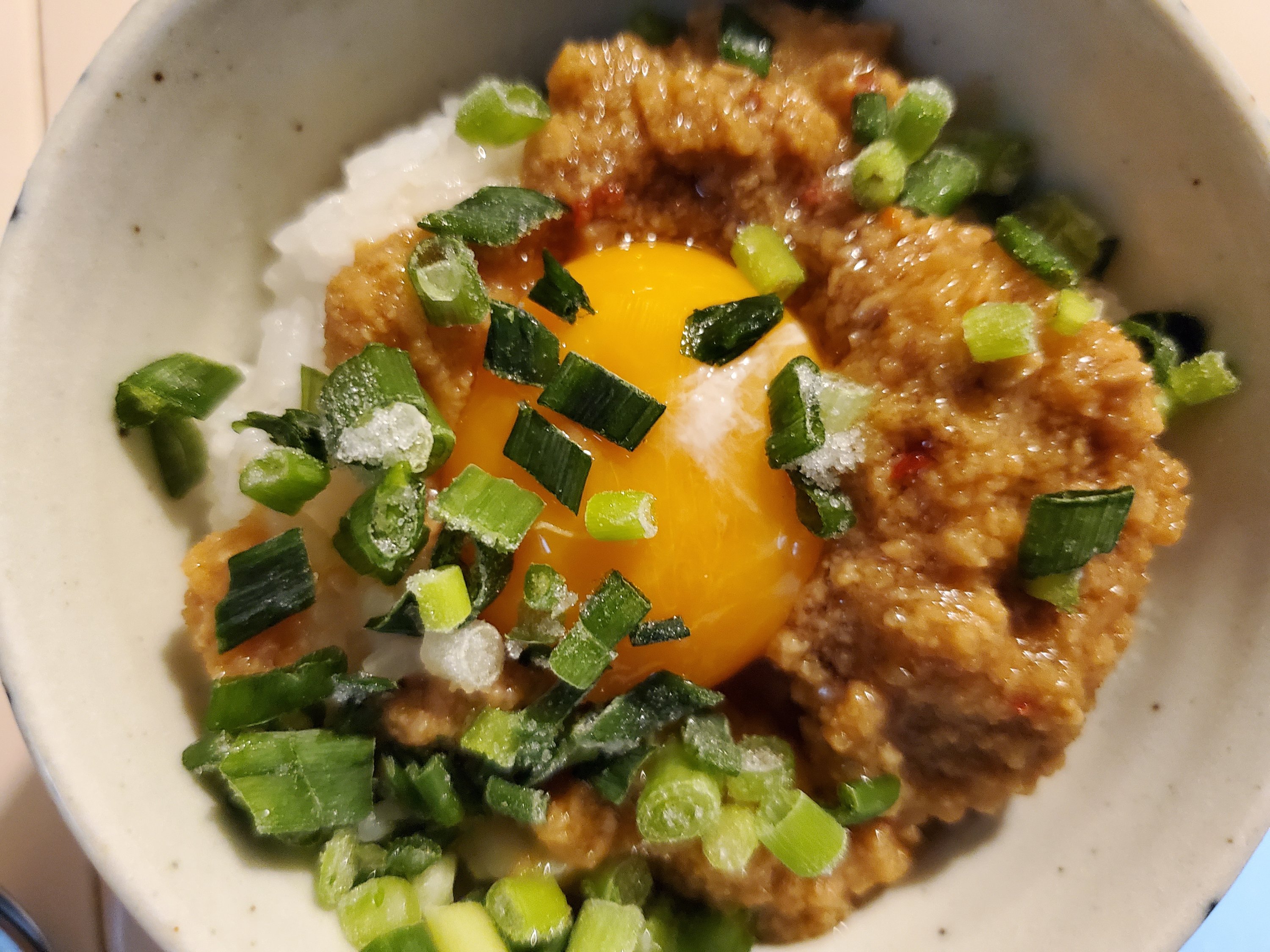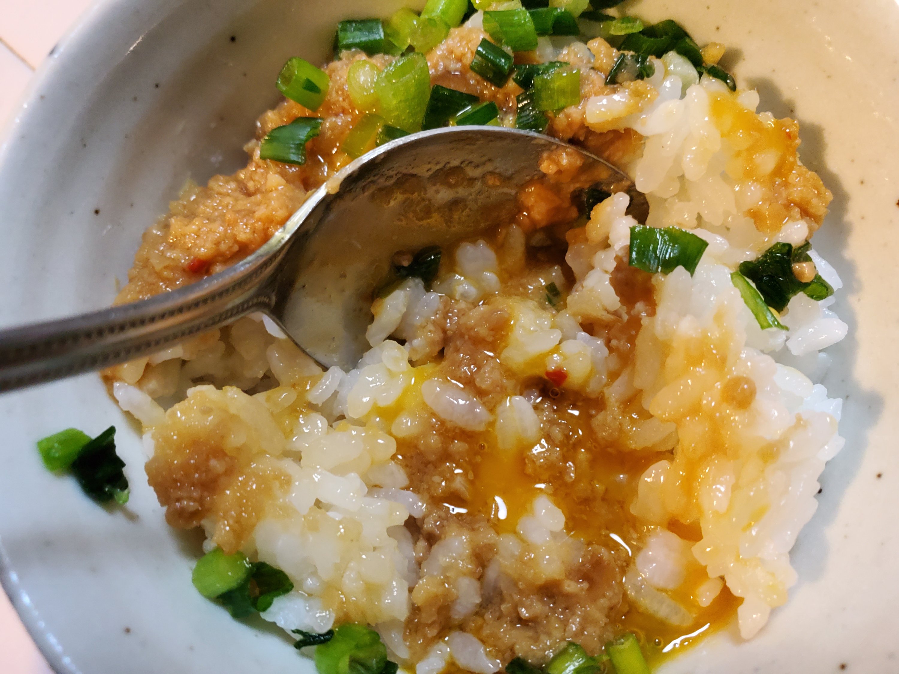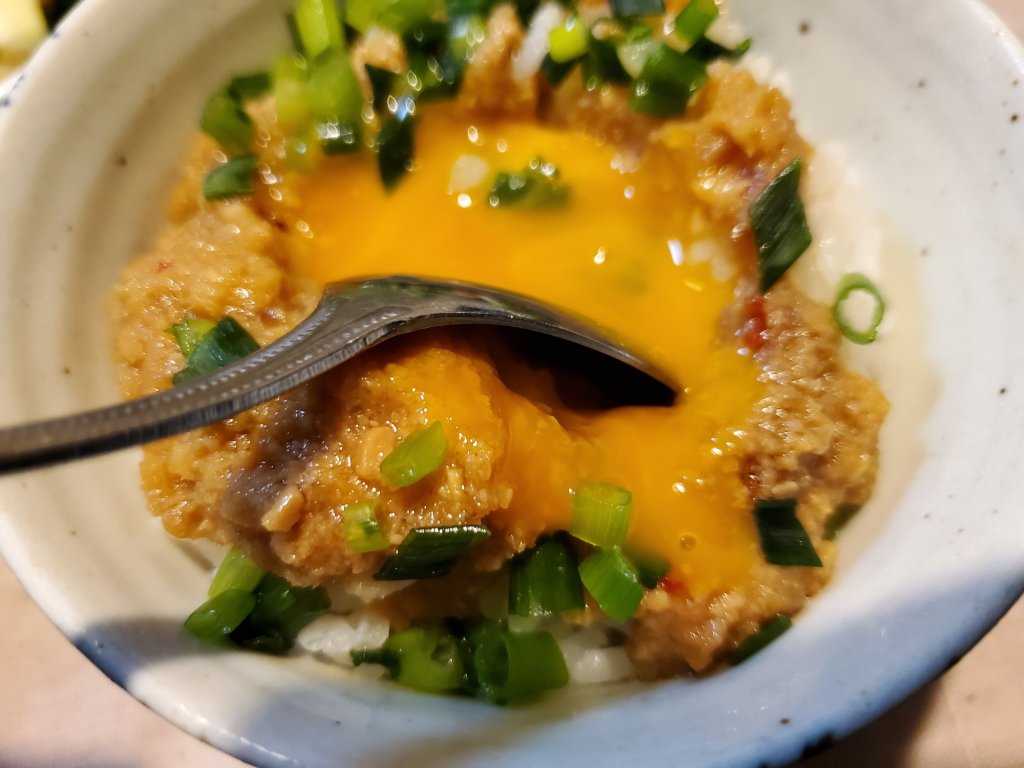 ご飯にかけるギョーザの味をしっかり楽しむのには、卵黄のみでまろやかさを加えるのがぴったりです。