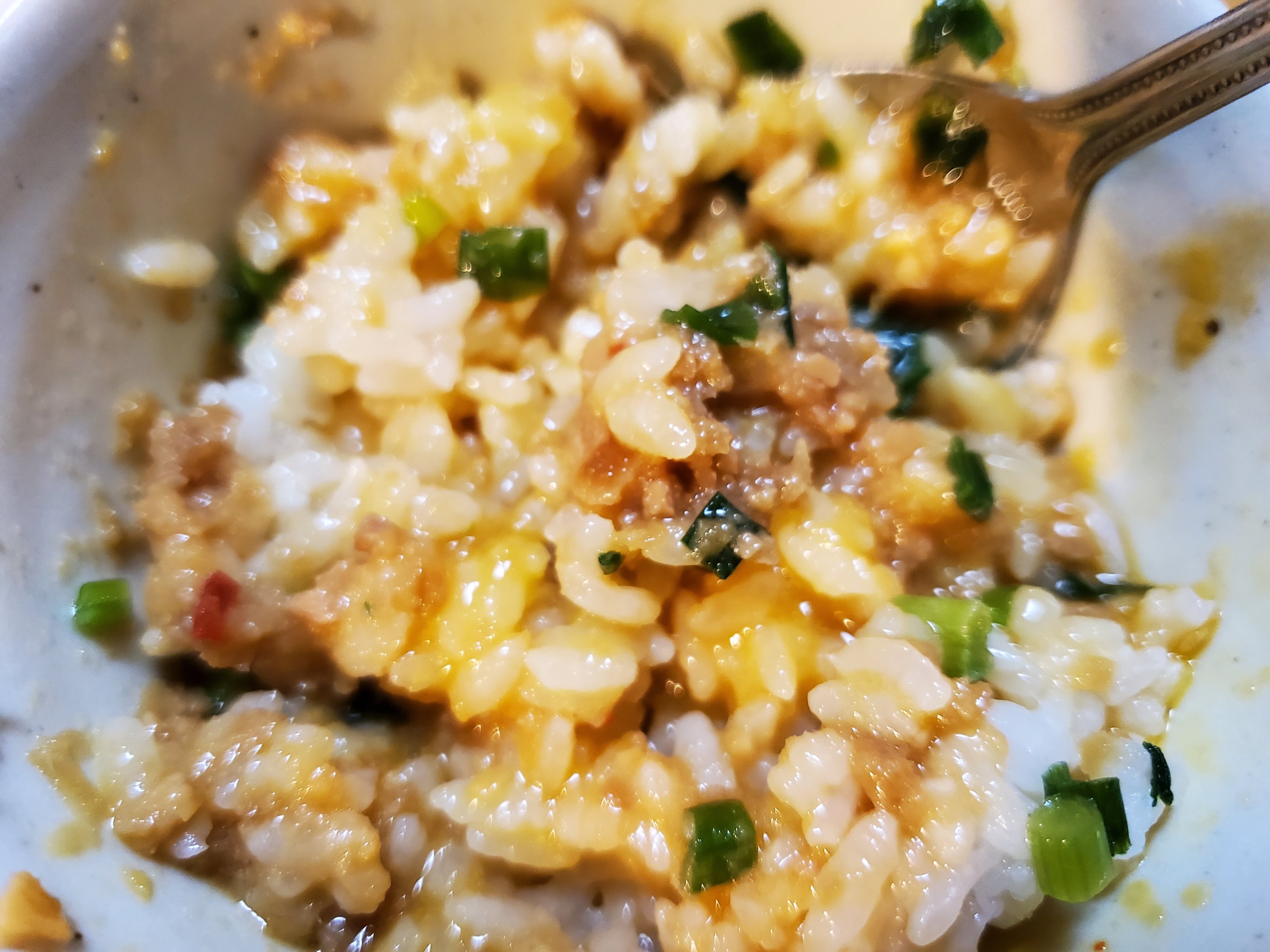 ご飯にかけるギョーザ、とっても完成度が高くて、これだけで文句なくおいしい!!