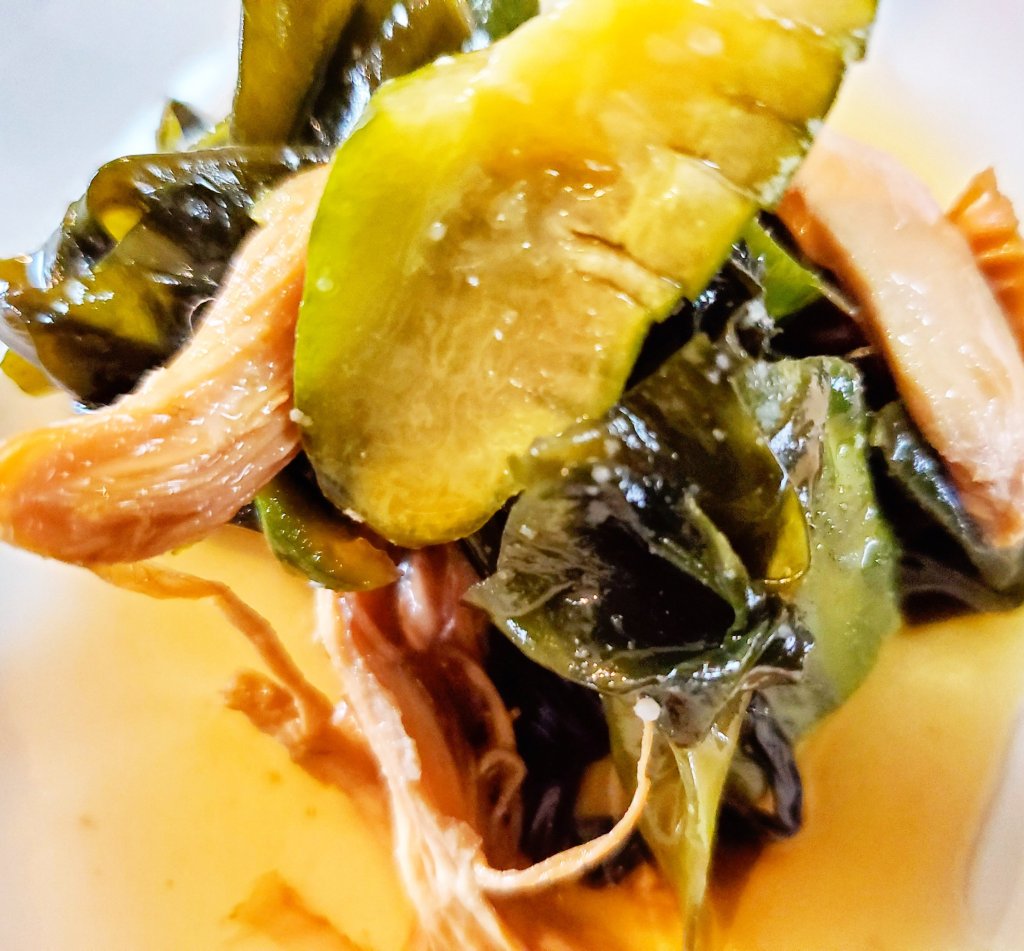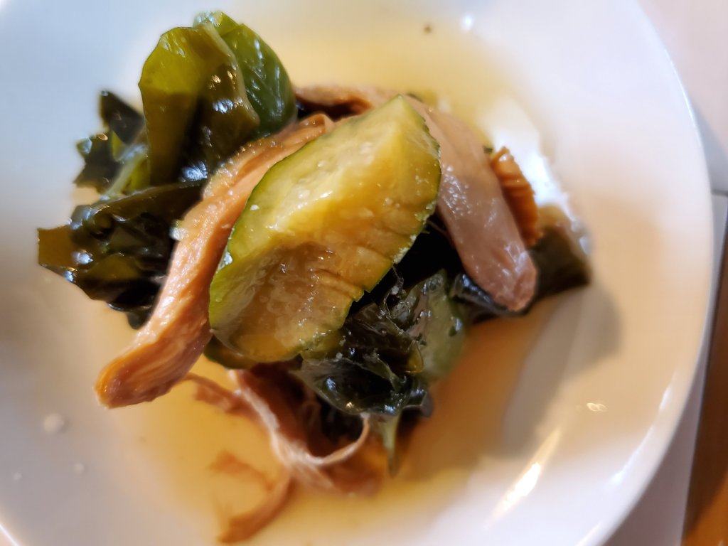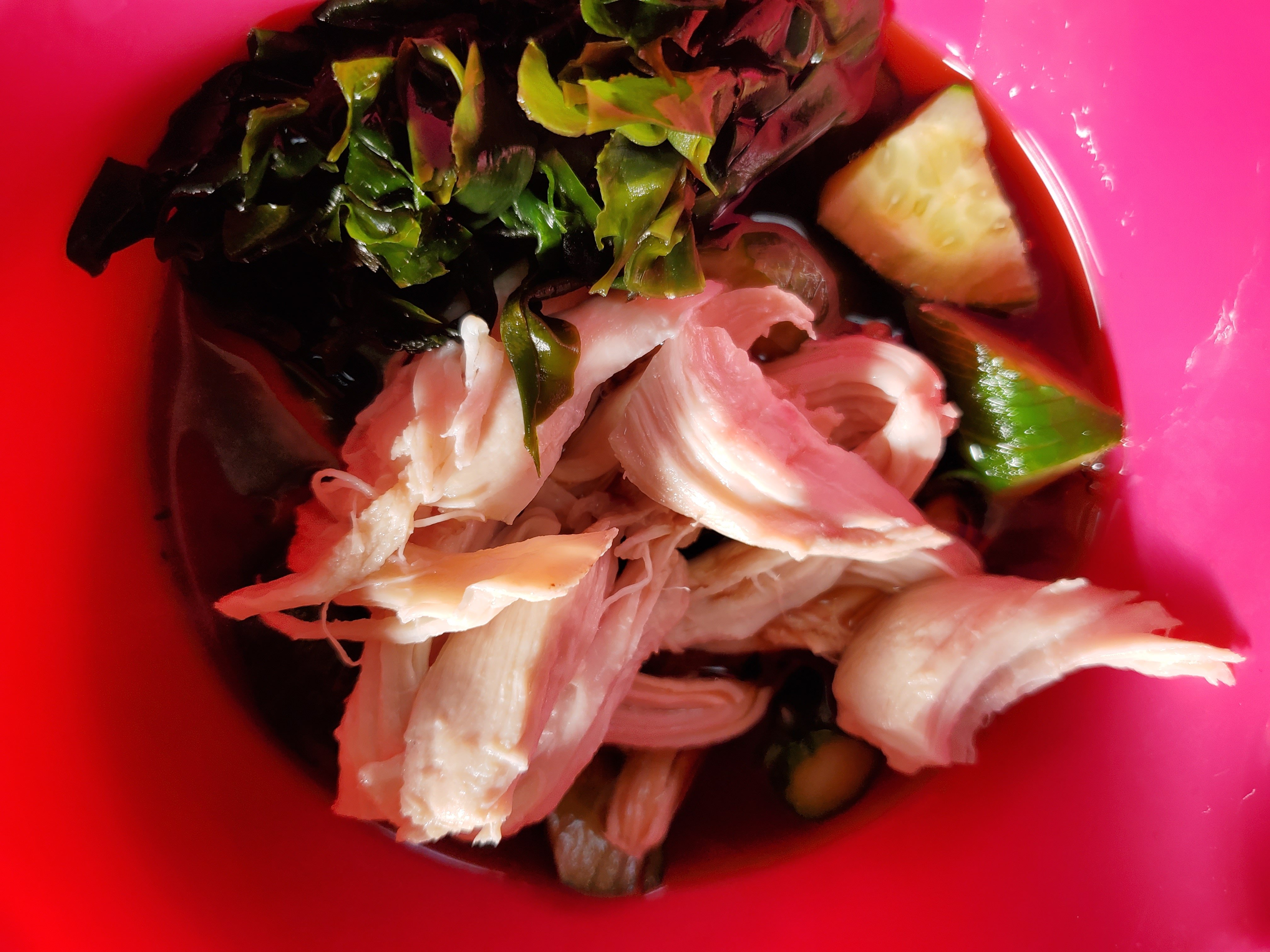 材料はきゅうり、鶏胸肉(ササミでもOK)と乾燥ワカメ。