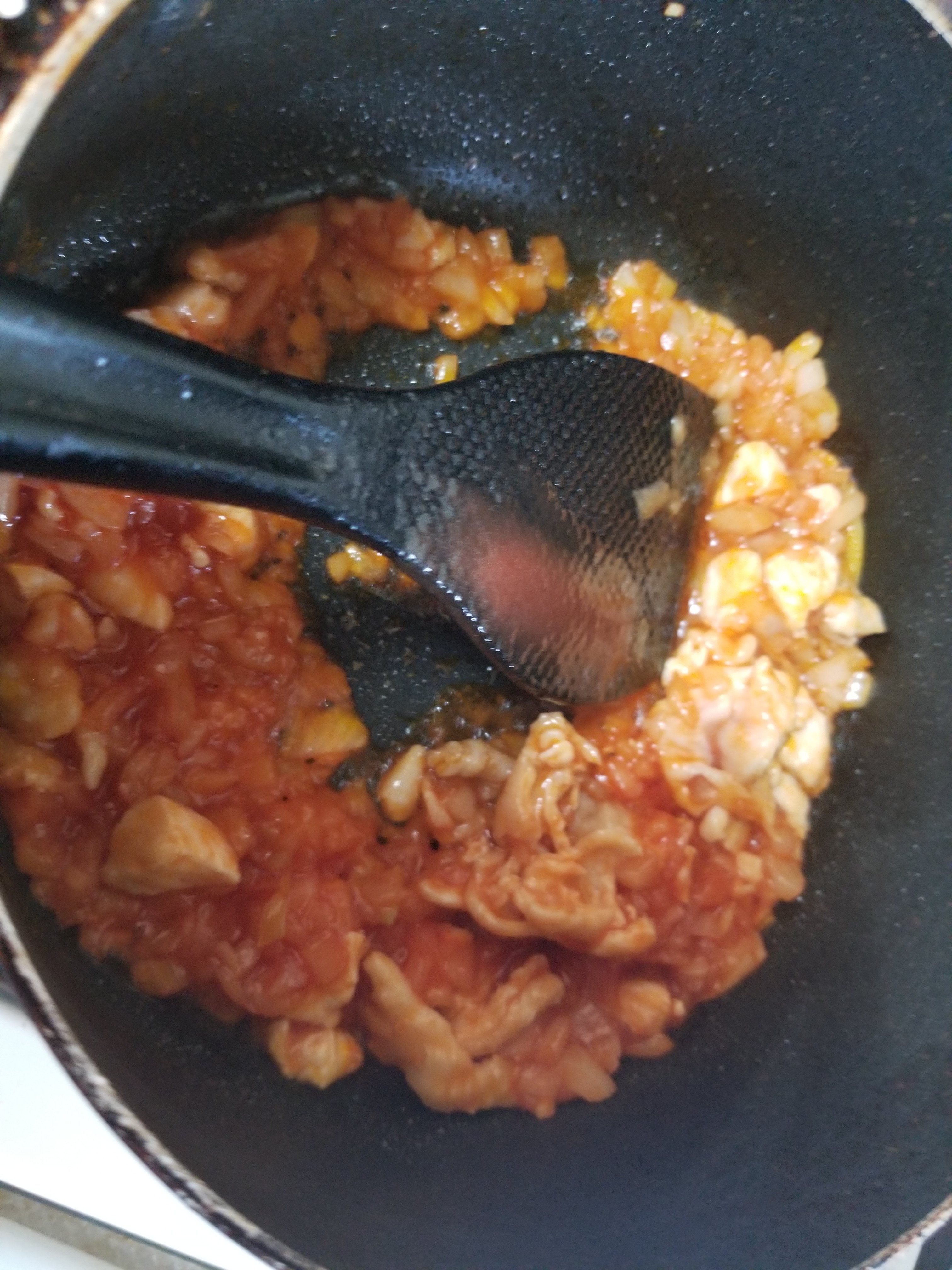 玉ねぎもたっぷり、そこにえのきを加えることで、