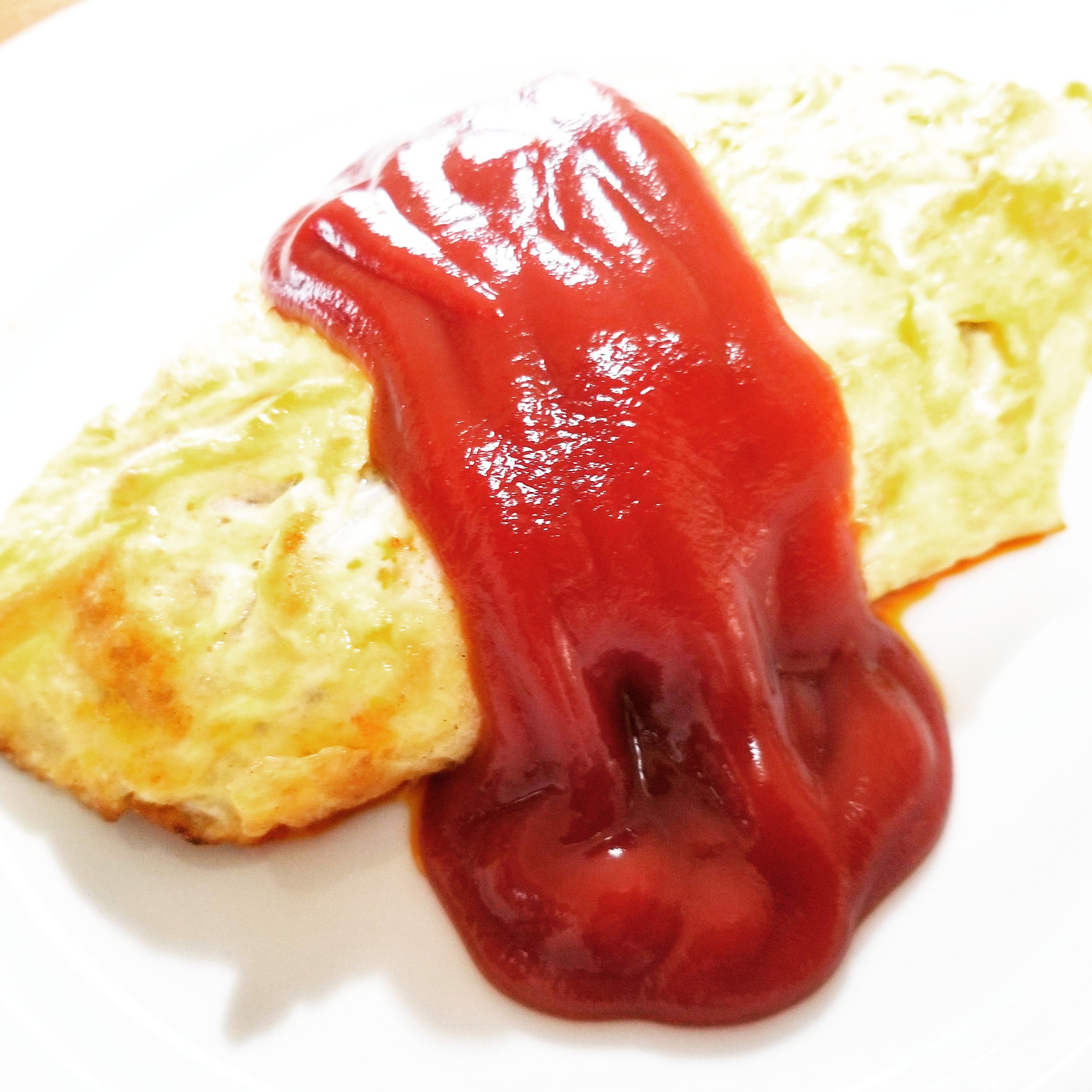 黄色い卵の上に真っ赤なケチャップ🍅