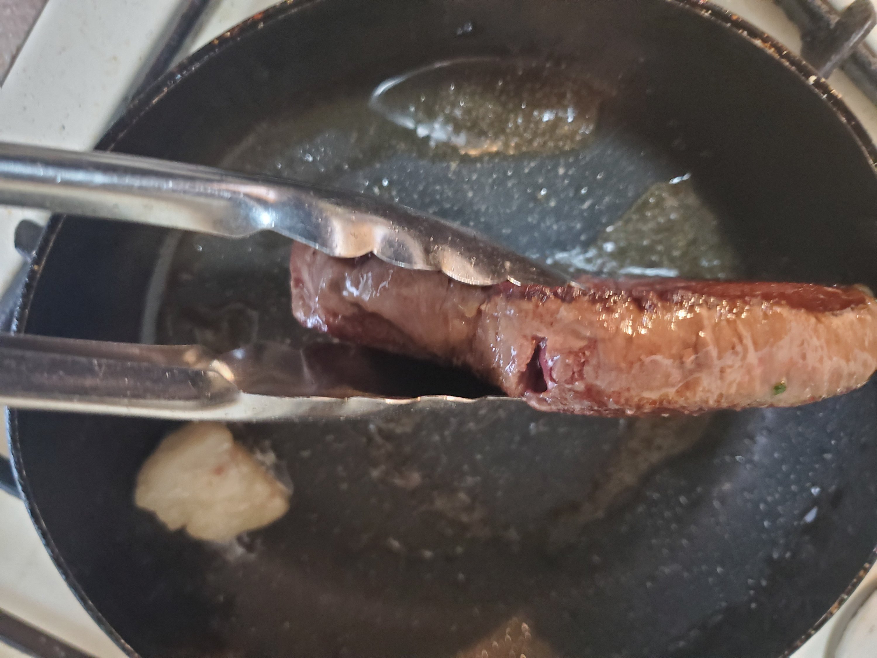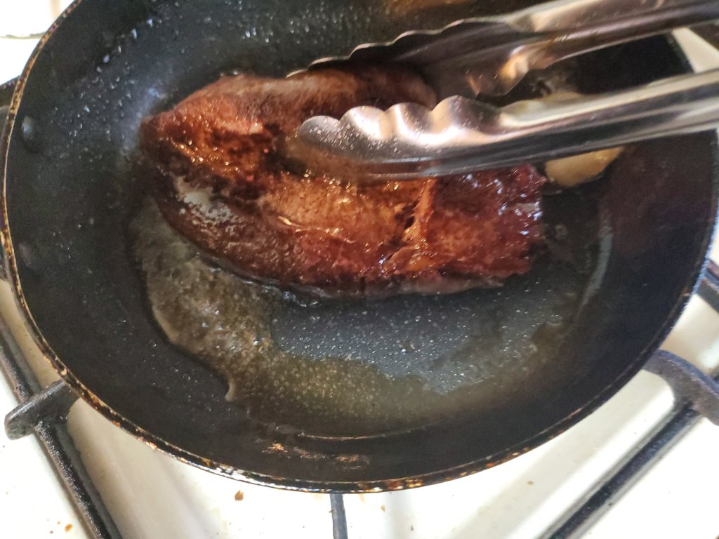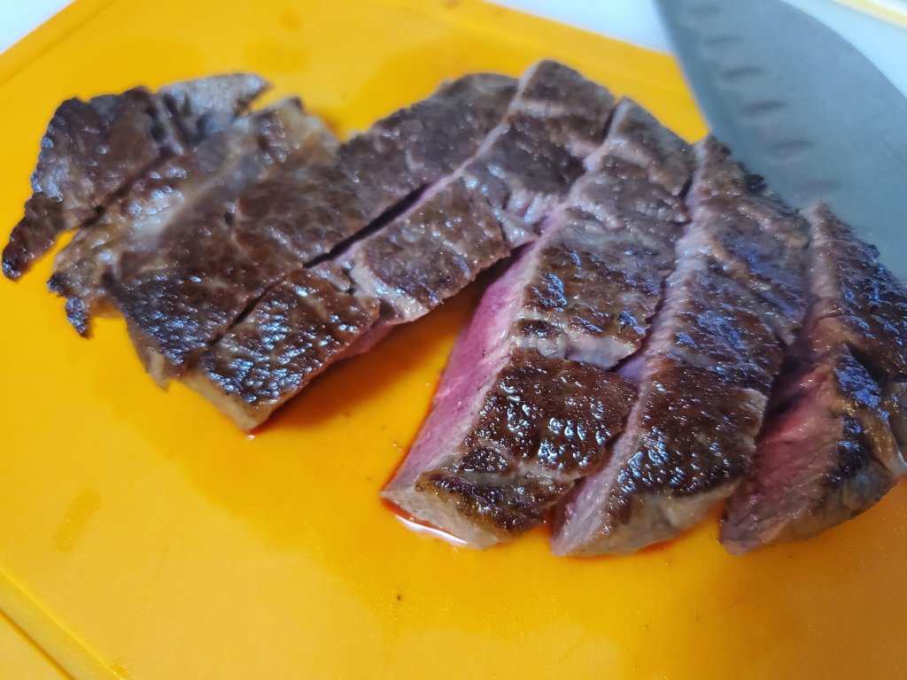 今回のソースはお肉に付いていた和風のステーキソースですが、専用ソースがないときはみりんと醤油でも美味しく仕上がります。