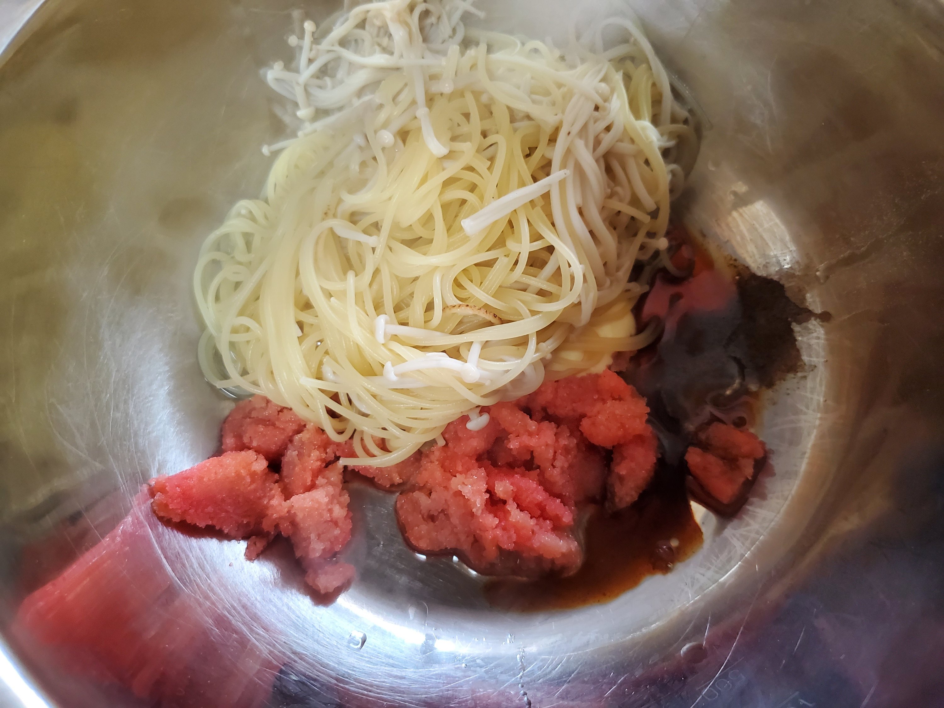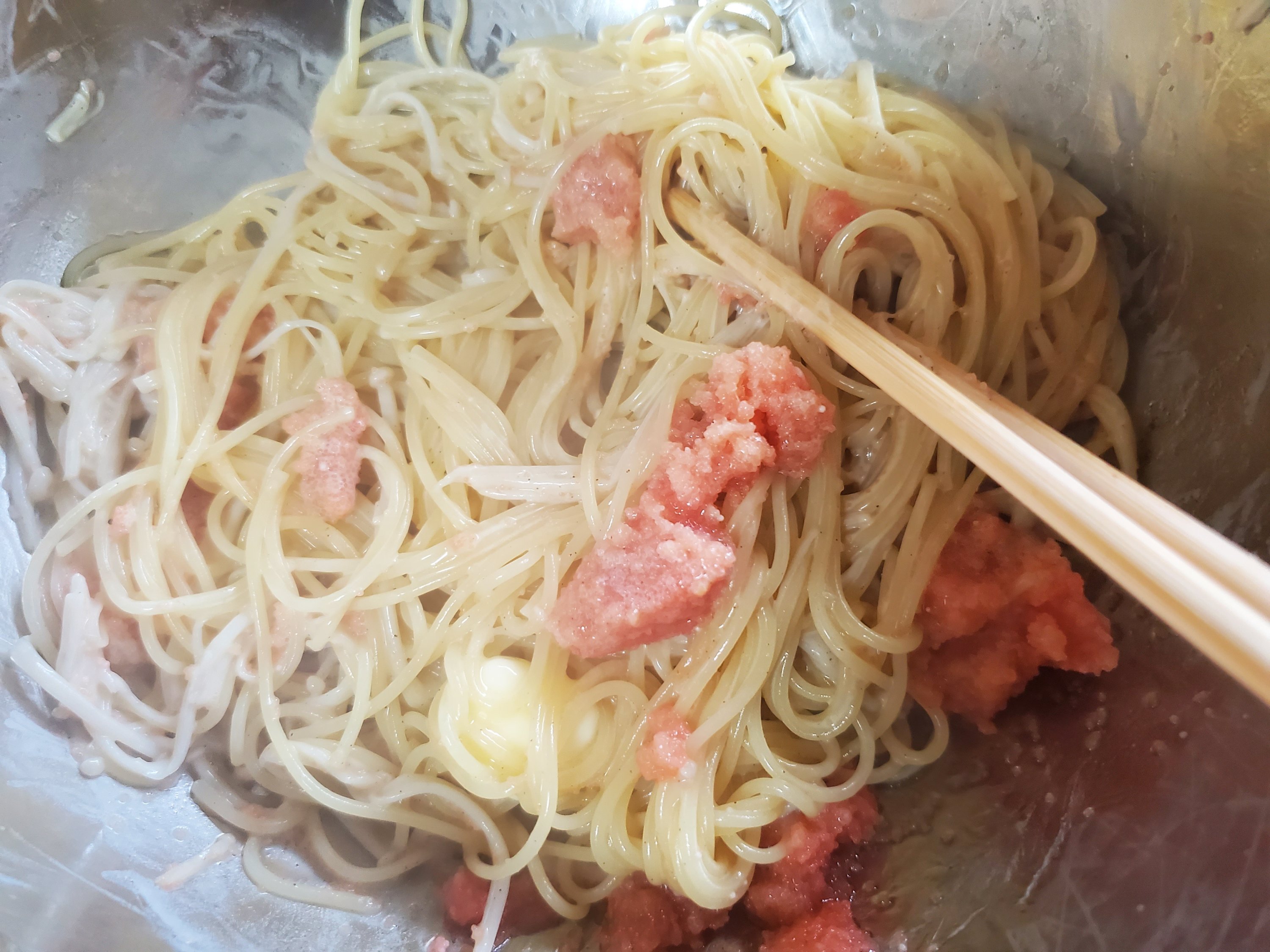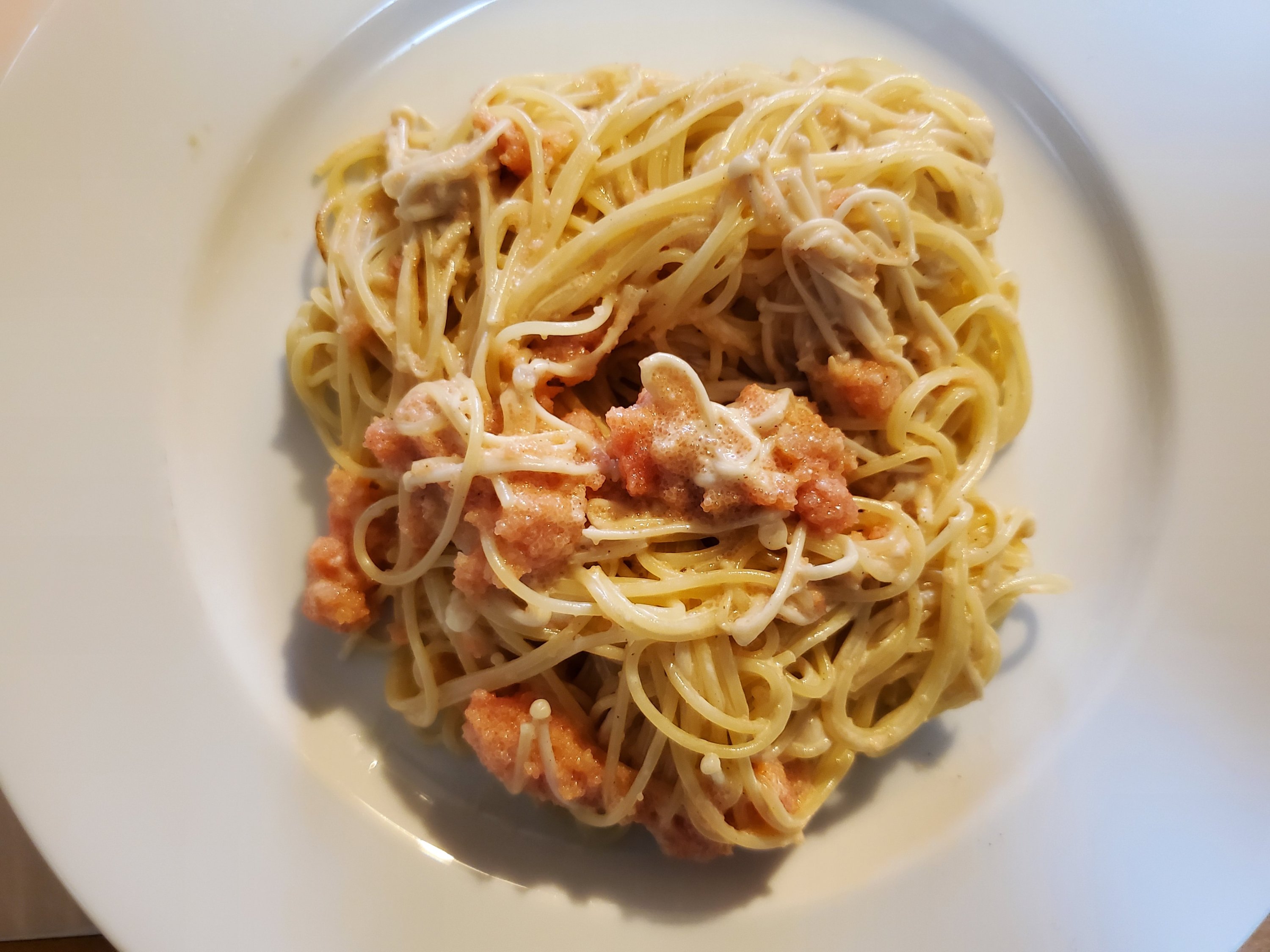 タラコのパスタというと、スパゲッティを使うことが多いと思いますが、我が家ではカッペリーニが定番です。
