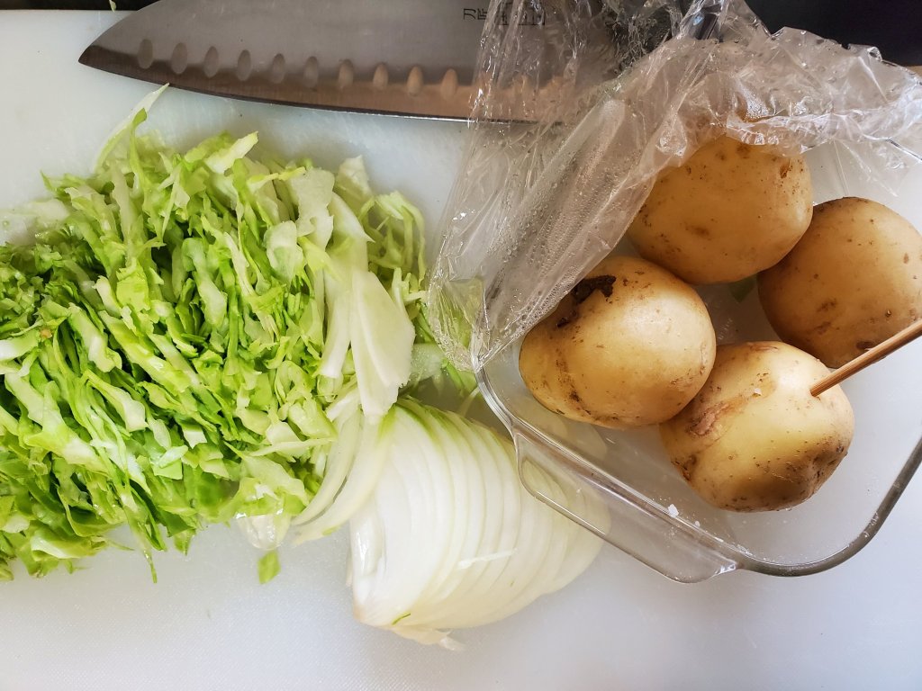 レンジでチンしたじゃがいもを準備。