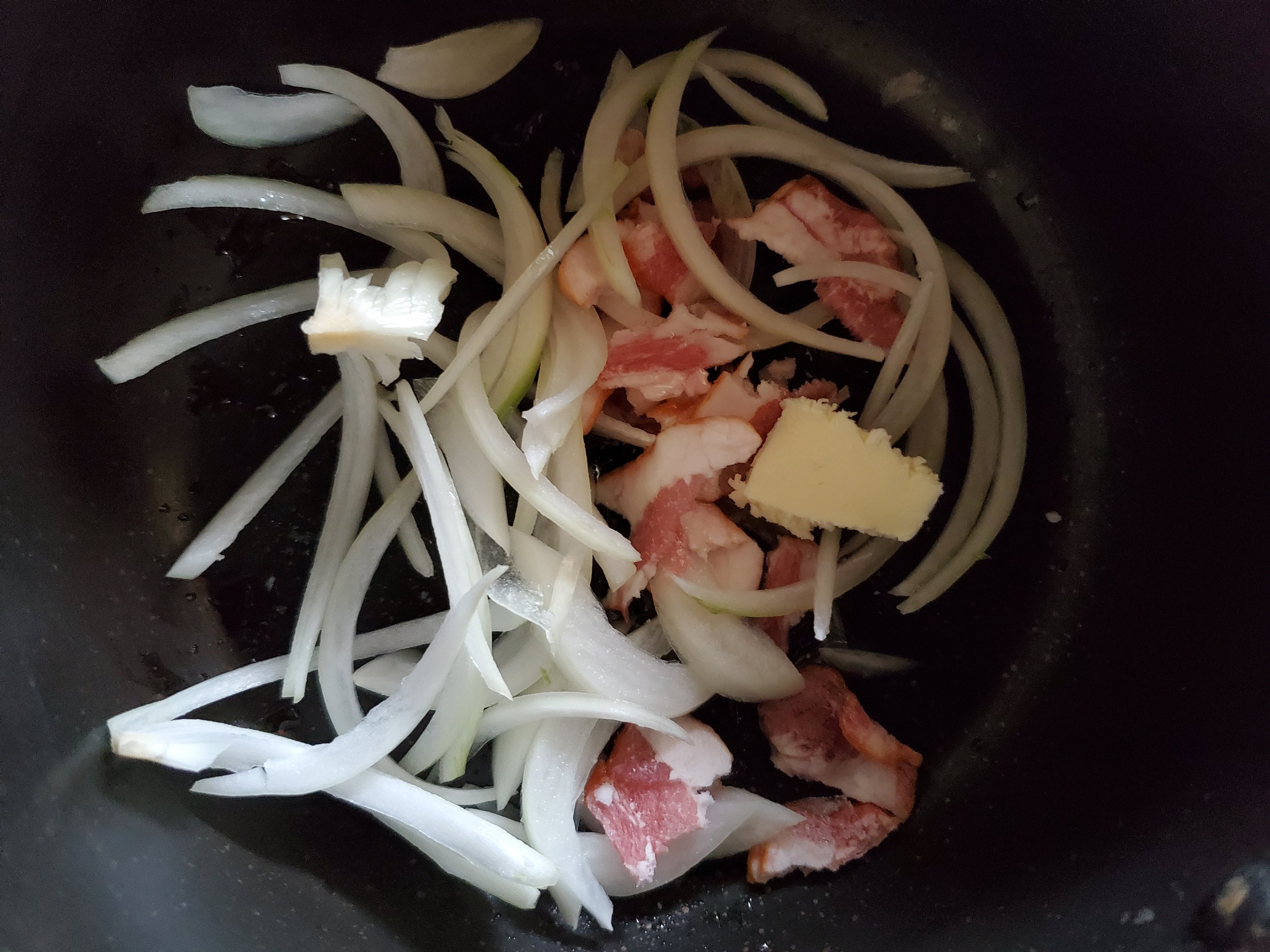玉ねぎをバターで炒めます。