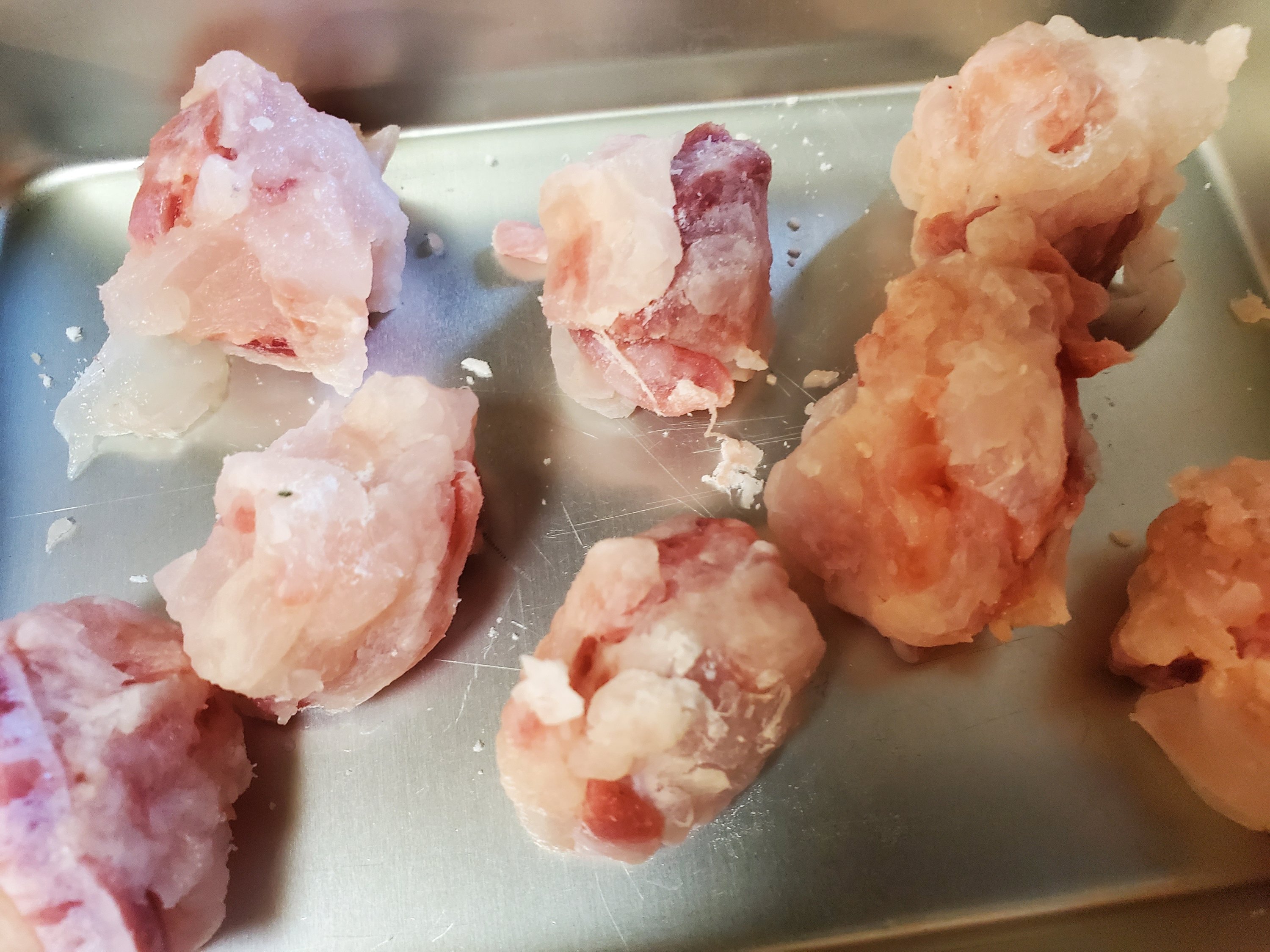 メイン素材には、近くのスーパーで100円で売っていた鯛のアラ。