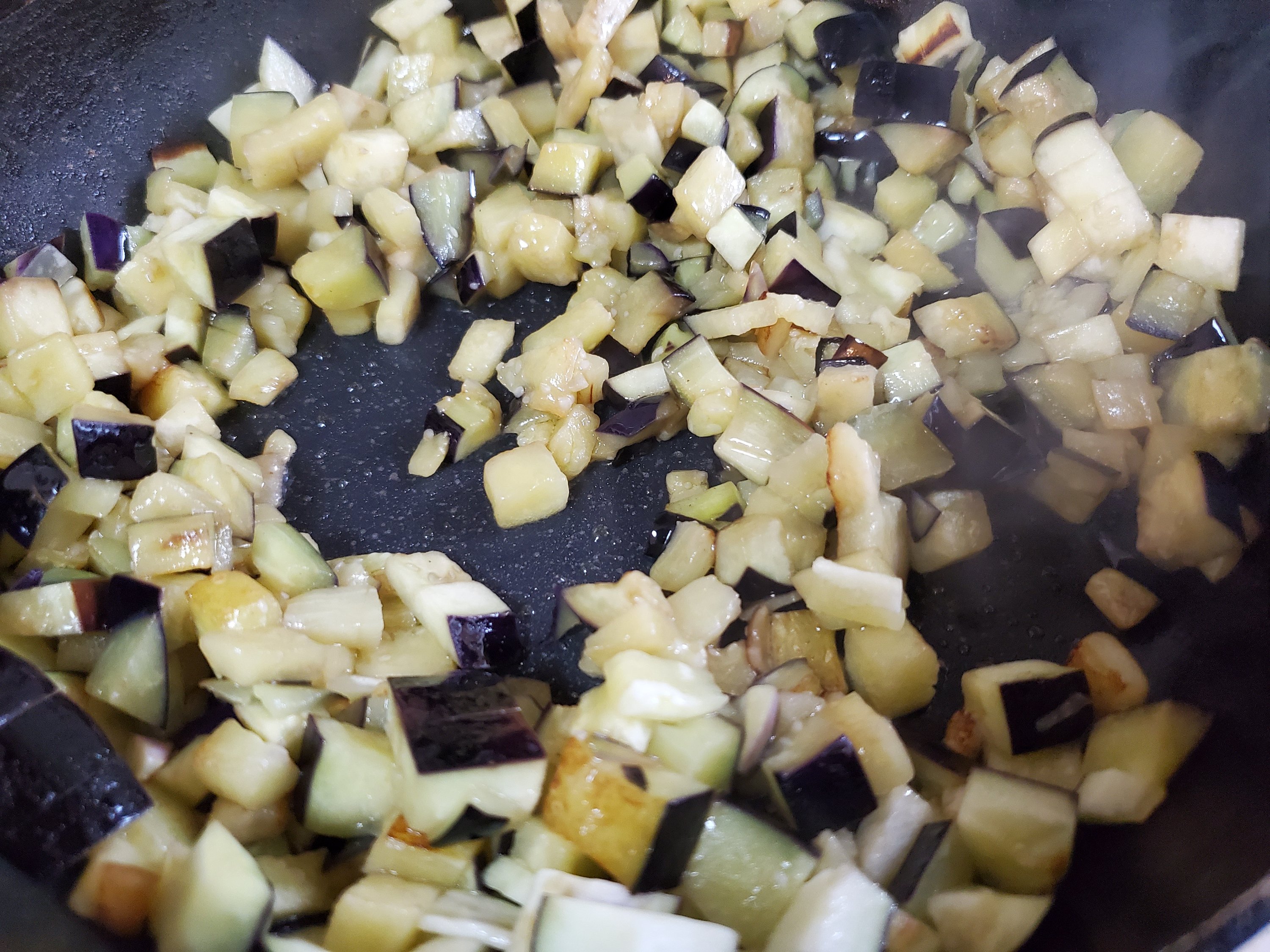 なすは油を吸うので、たっぷりと使用します。