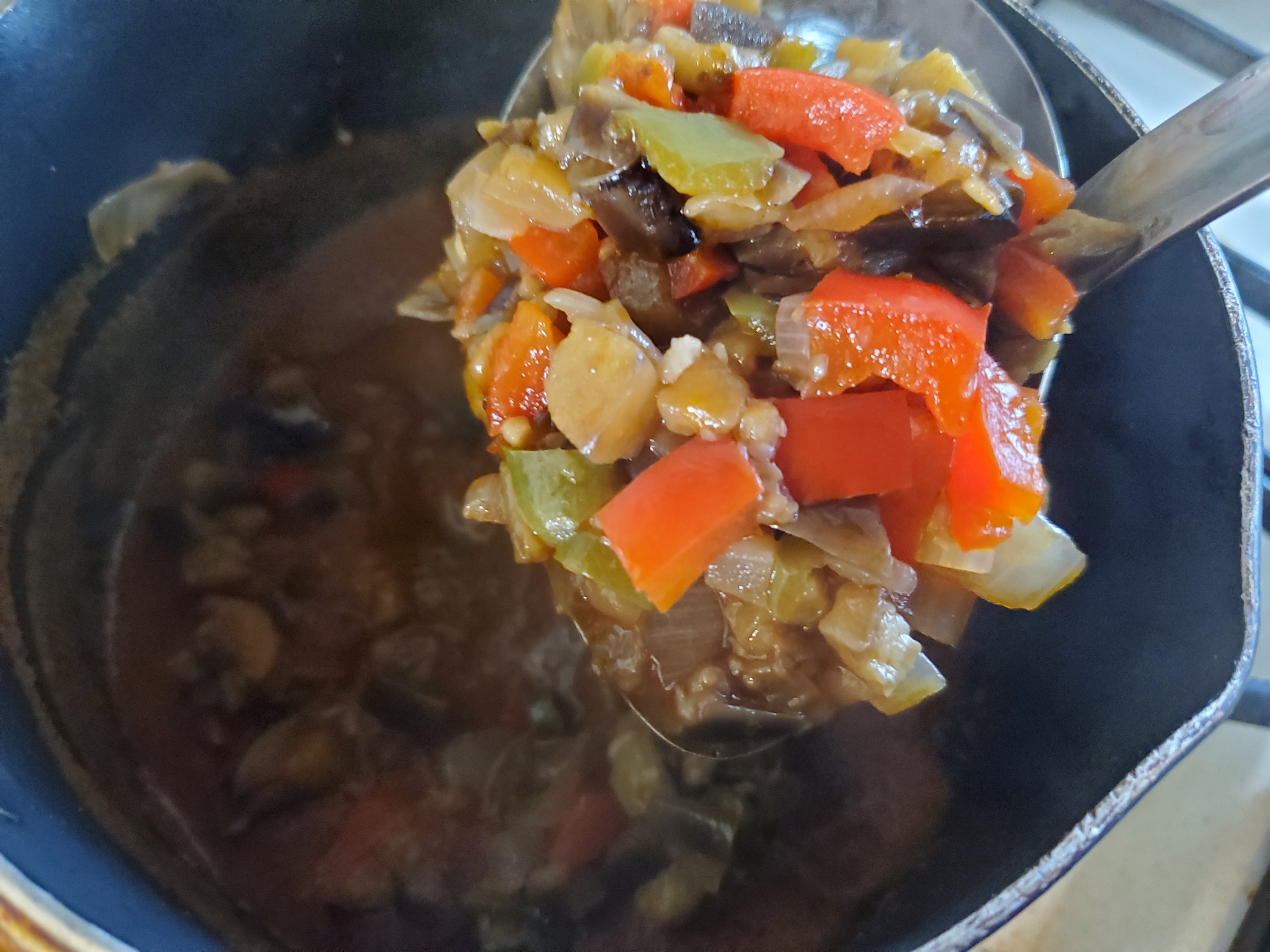 彩りも鮮やか、夏野菜と栃木県なすのおいしさをたっぷり味わうカレーの完成です🍛