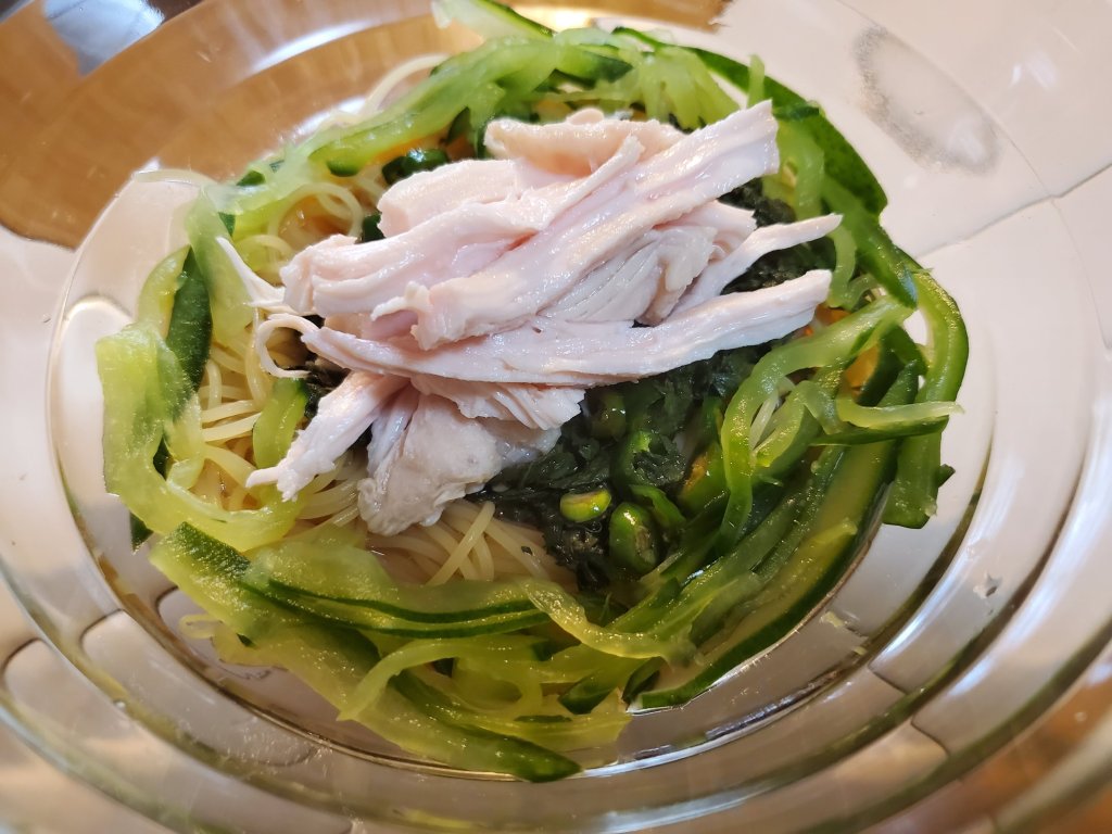 極細のパスタは冷やすとツルツル食べられて、夏の食卓にいいですね。